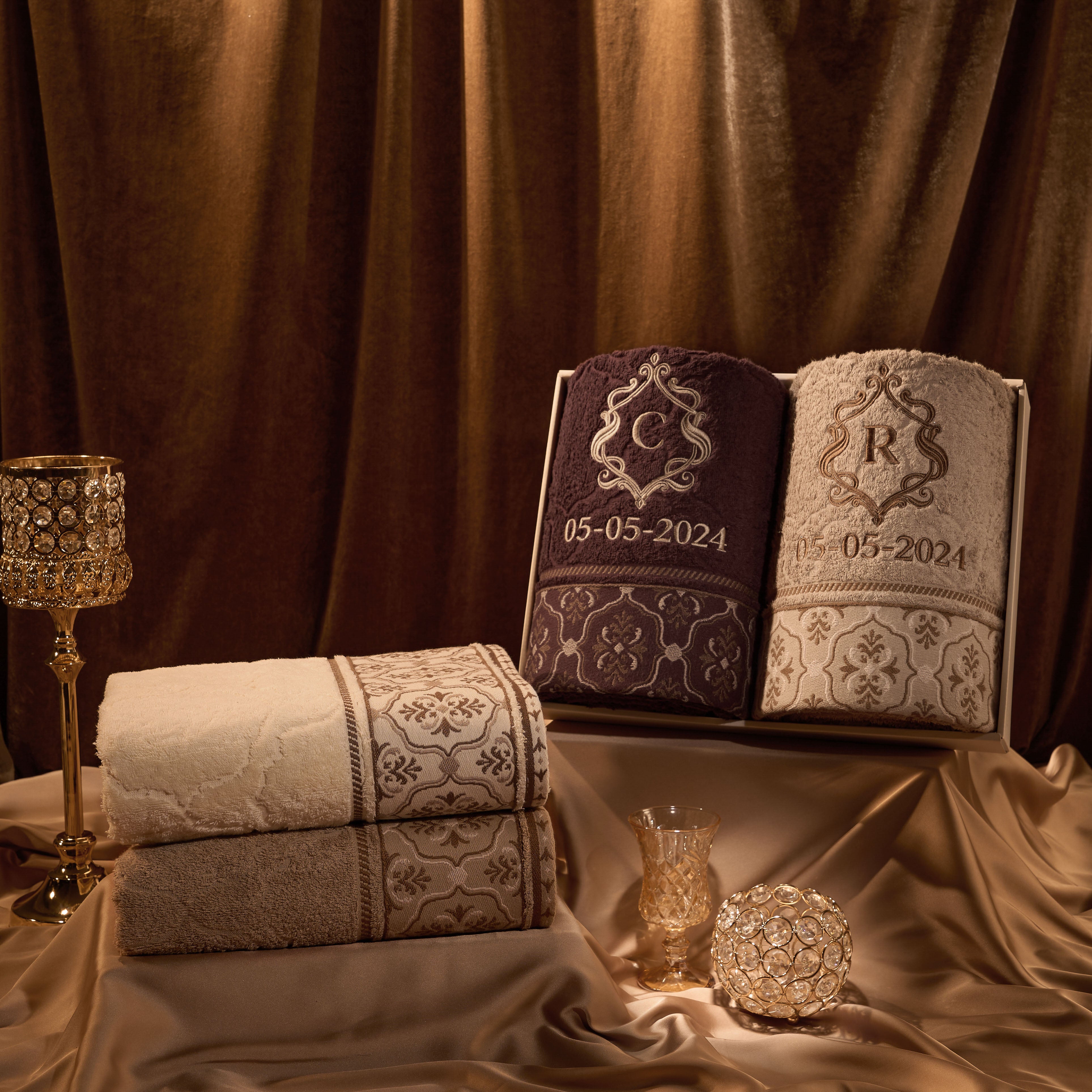 A classic and practical gift collection featuring a 2-in-1 essential towel set. Designed with vintage-inspired motifs in versatile neutral color options to suit various event themes. Add a special touch by personalizing it with embroidered names or dates of your loved ones.
