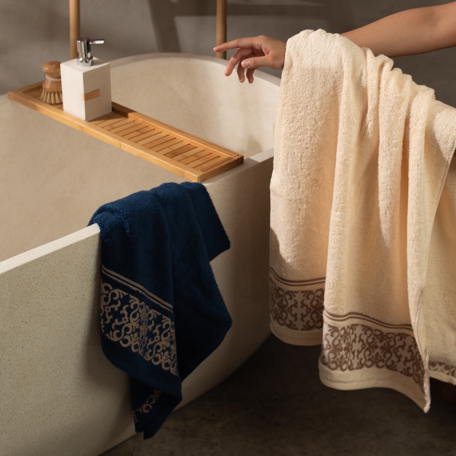 A blend of classic Baroque motifs with a selection of luxurious colors makes the Audrey Couple Towel an elegant and premium gift choice to celebrate meaningful moments with loved ones. Crafted from soft Classic Cotton Essence, it's perfect for everyday use.