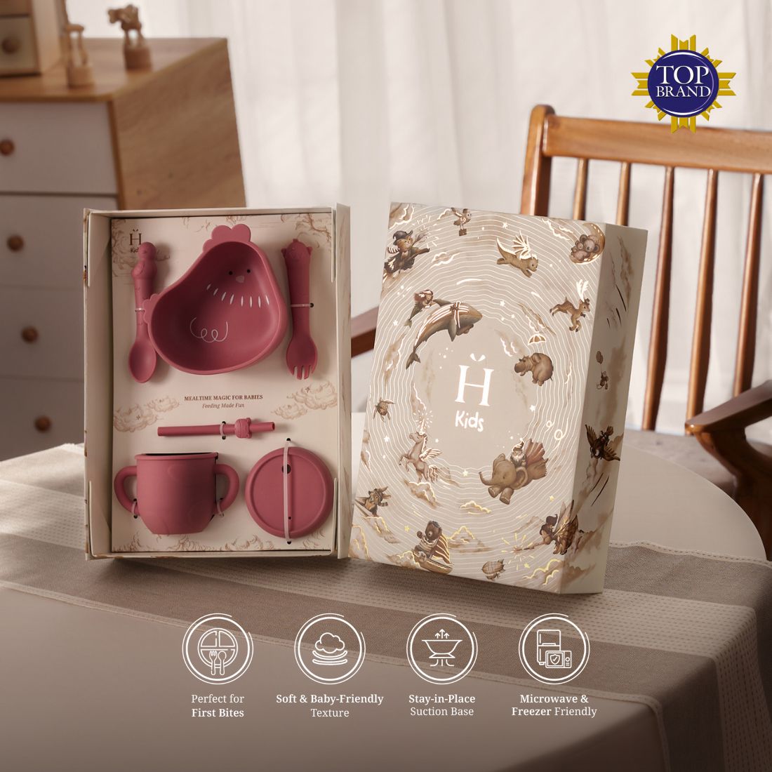 Make mealtime fun and safe with the Mini Set Kids Tableware — a 4-in-1 gift set designed with adorable animal characters and soft, kid-friendly colors. Made from baby-safe Platinum Silicone, it’s perfect for supporting your little one’s self-feeding journey and daily mealtime routines. A thoughtful gift for newborns, birthdays, or any special milestone — practical, charming, and truly meaningful.