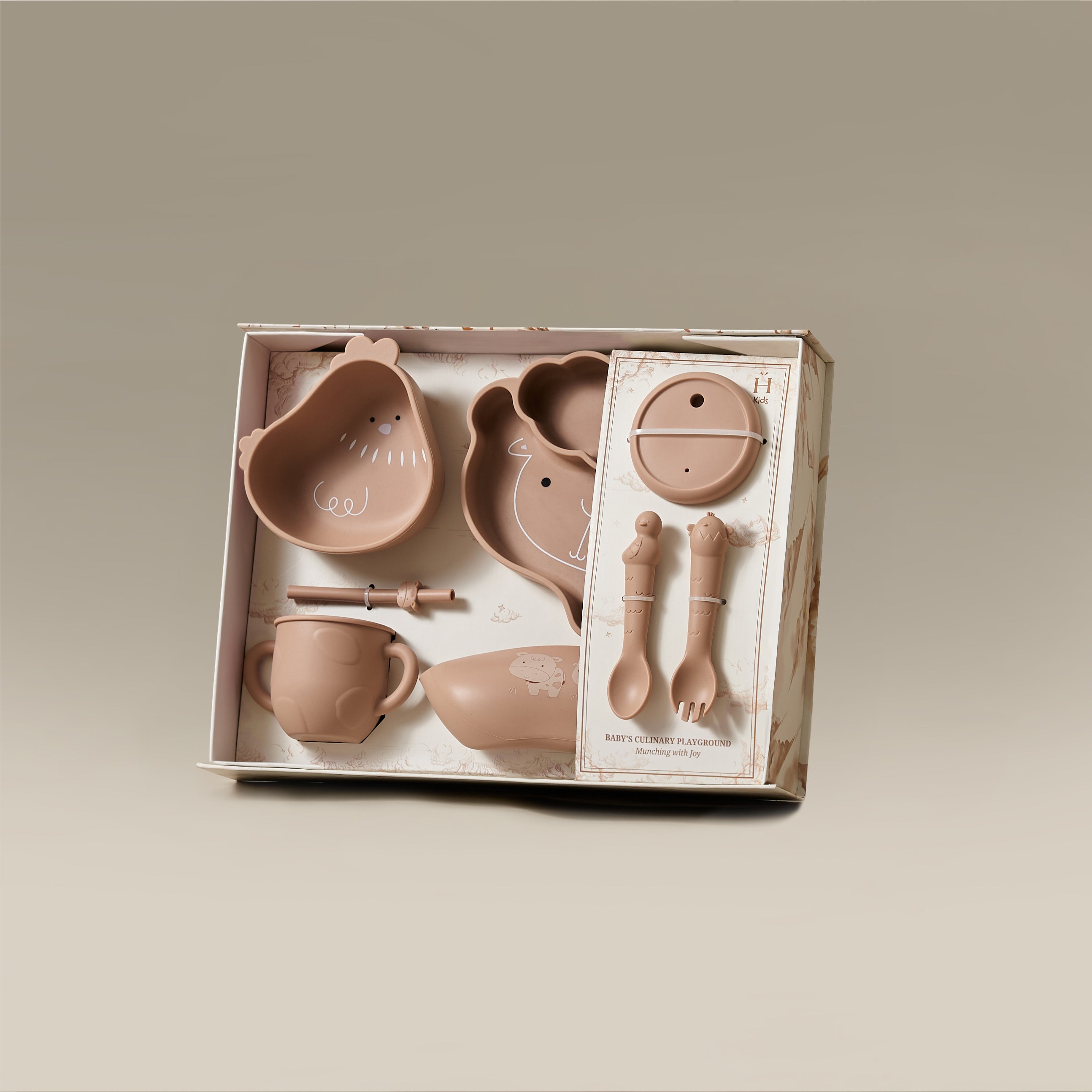 Featuring adorable animal characters loved by kids, the Complete Set Kids Tableware makes self-feeding moments more enjoyable and comfortable for your little one. This 6-in-1 dining set comes in three soft, kid-friendly colors: Clair Bleu, Mauve, and Beige. An essential and thoughtful gift to celebrate a newborn or to delight any child on their special day.