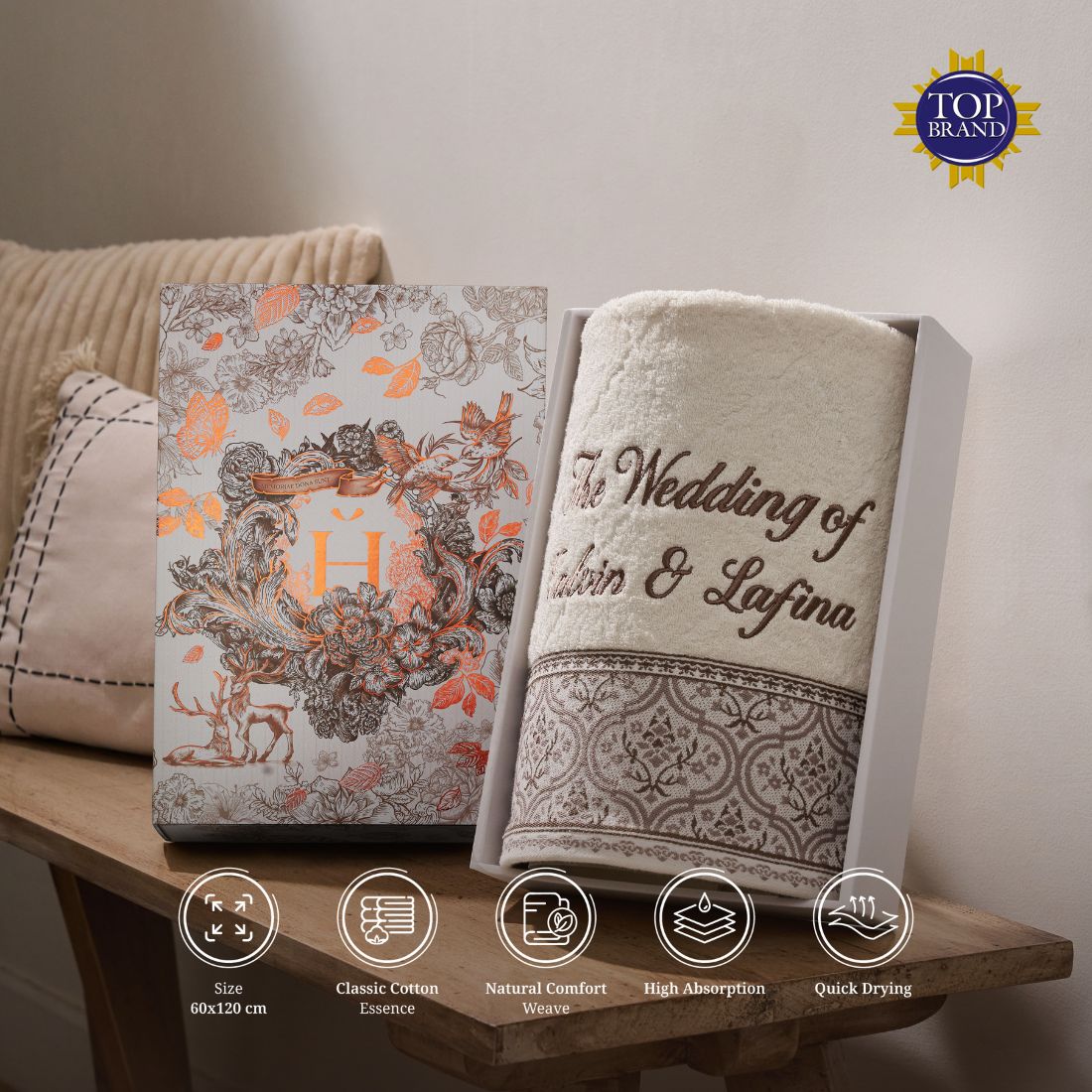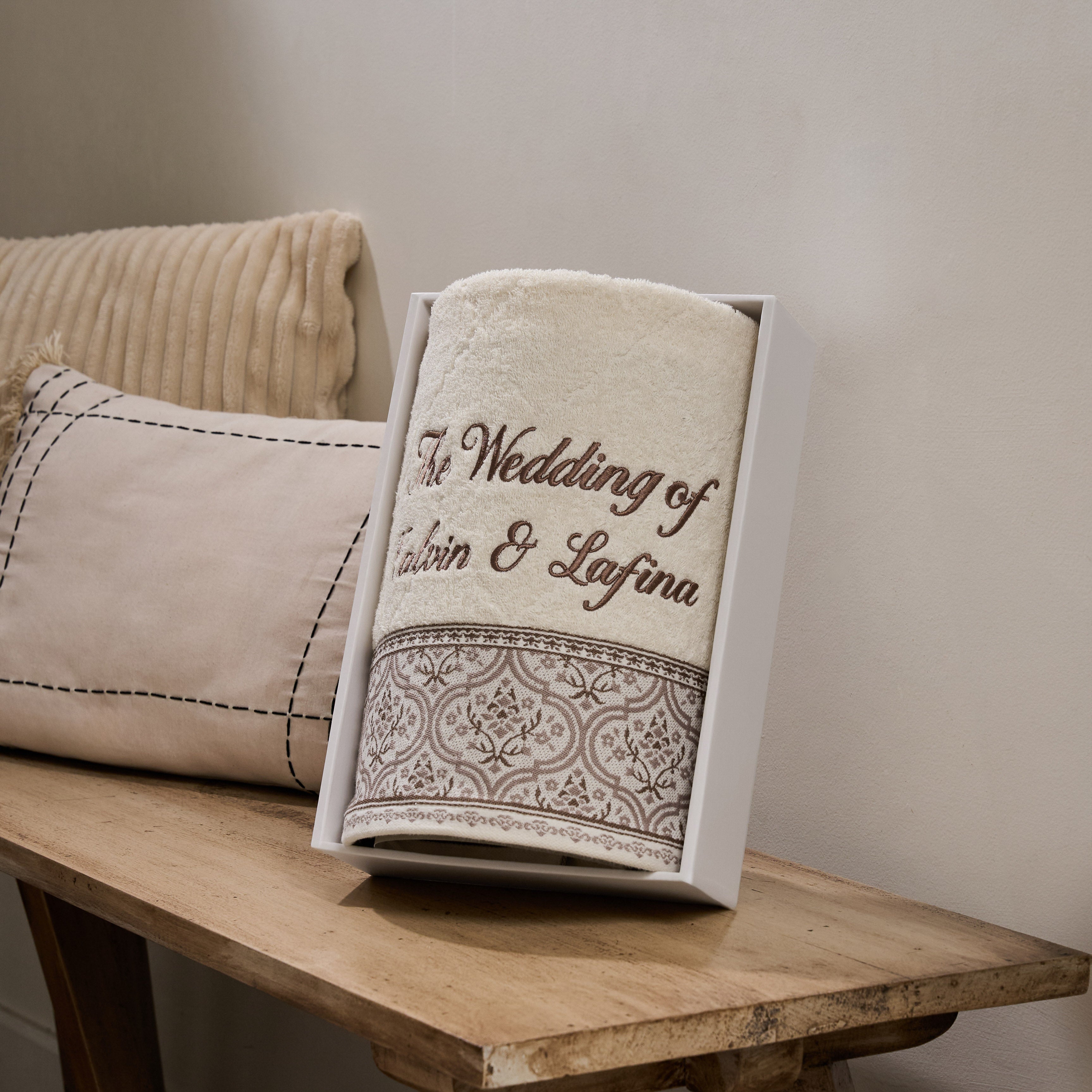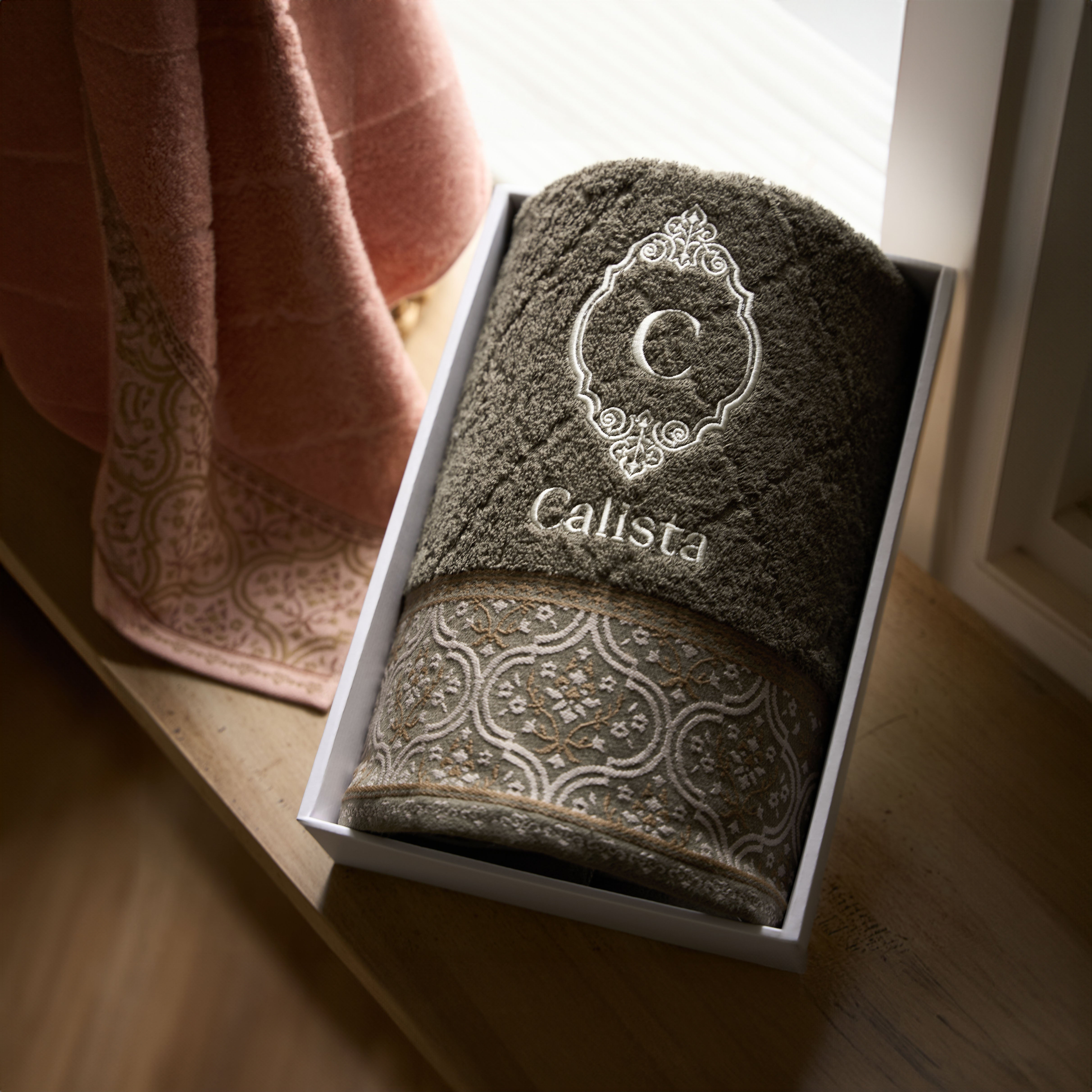 A sweet and practical gift choice for your loved ones on their special day. Inspired by the beauty of an eternal garden motif, available in three soft color variations. Made from highly absorbent Classic Cotton Essence, it’s comfortable for daily use and can be personalized with custom embroidery as a special finishing touch.