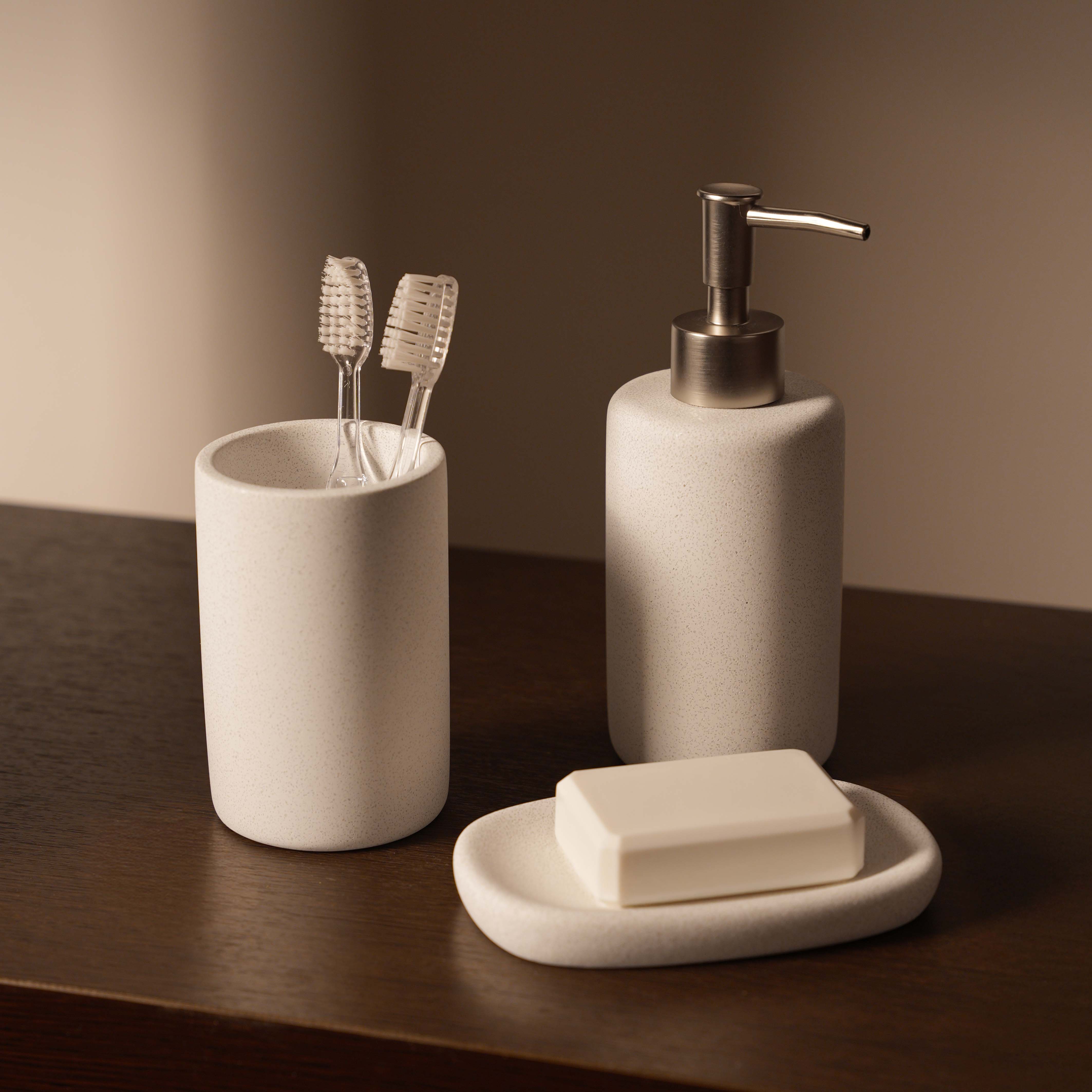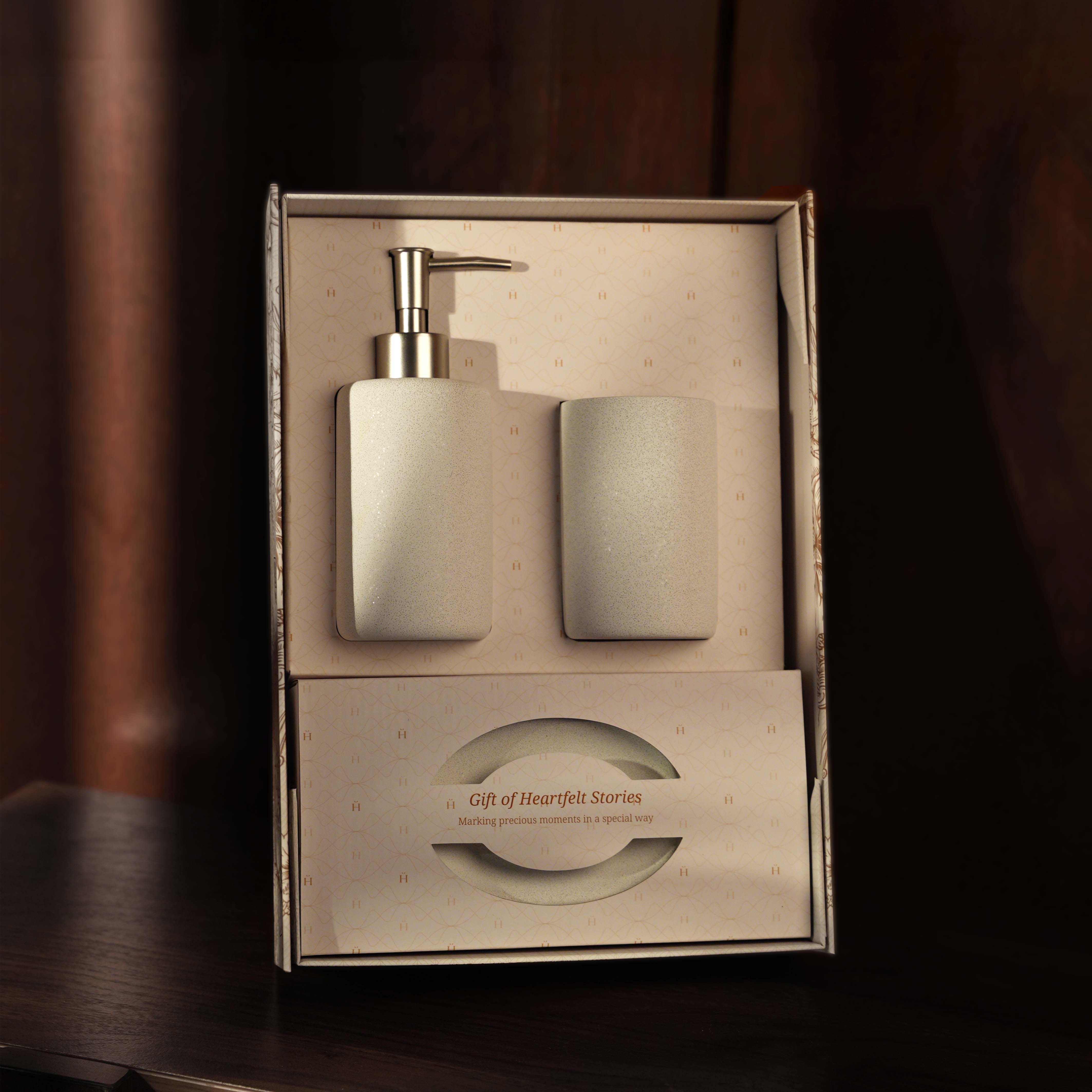 A thoughtful and elegant gift set to complement any special celebration. The 3-in-1 Blair Bathroom Set brings a natural minimalist design in a clean white tone, elevated with glossy terrazzo accents. It adds a calming yet modern touch to any bathroom interior.