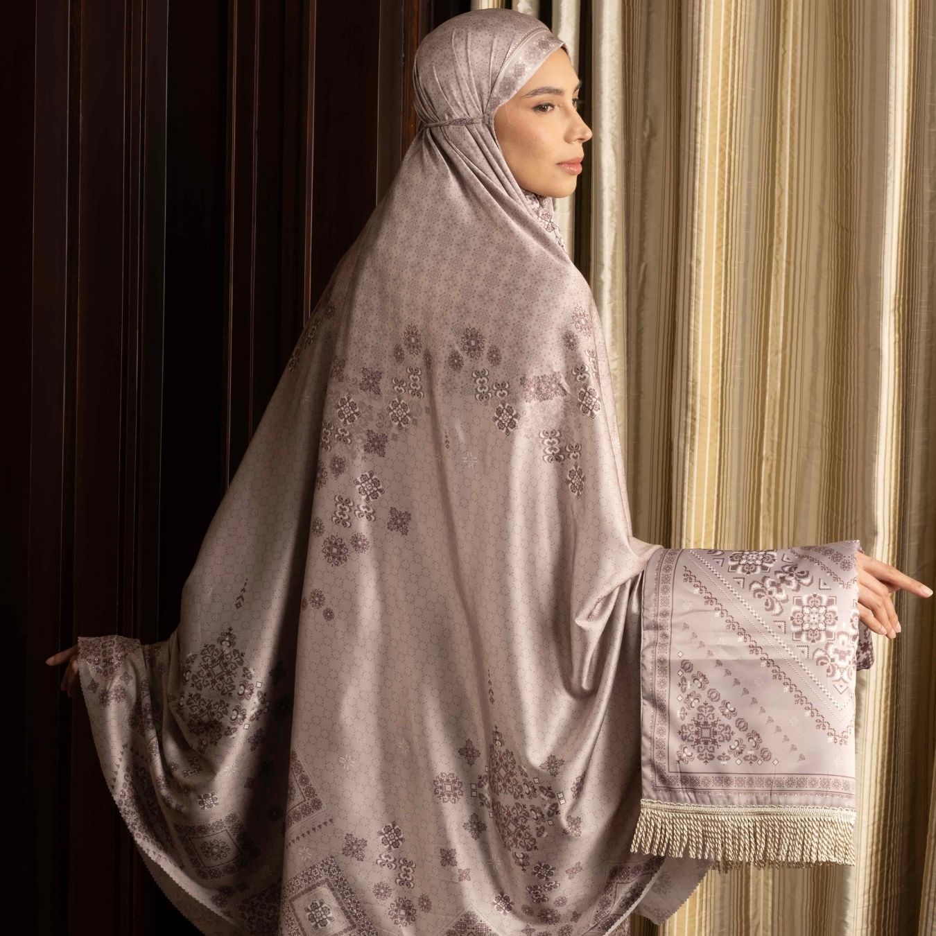 - Elegance in Every Detail: A soft mukena paired with a finely textured prayer mat—featuring hues and detailing that radiate feminine grace.