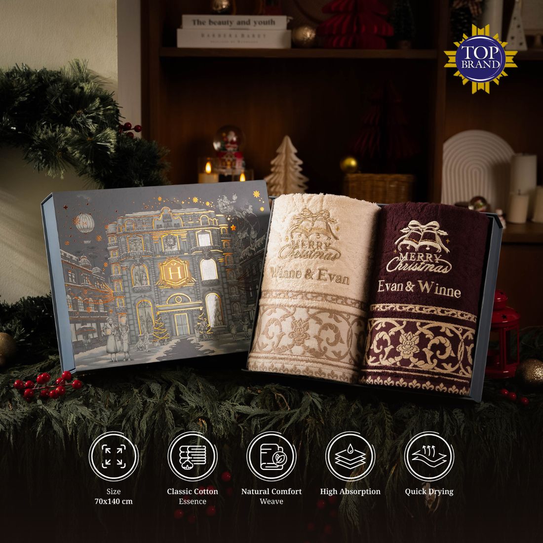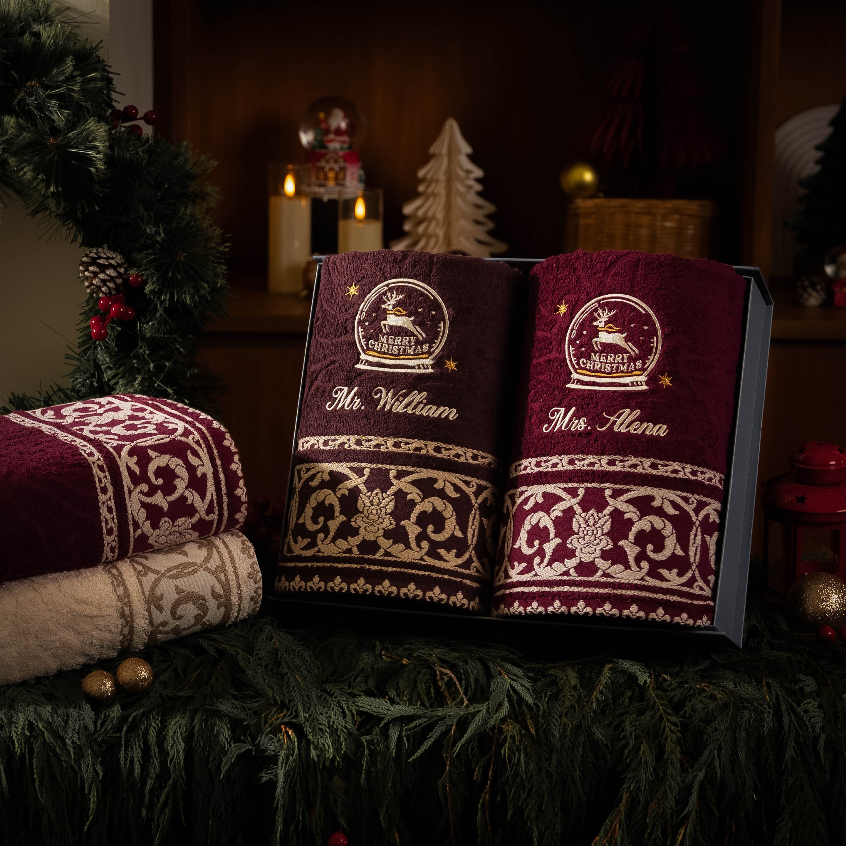 Celebrate this Christmas with timeless warmth and elegance through the Belle Couple Towel Set. Crafted from Classic Cotton Essence for a luxuriously soft texture and high absorbency, each towel is a perfect blend of comfort and sophistication.