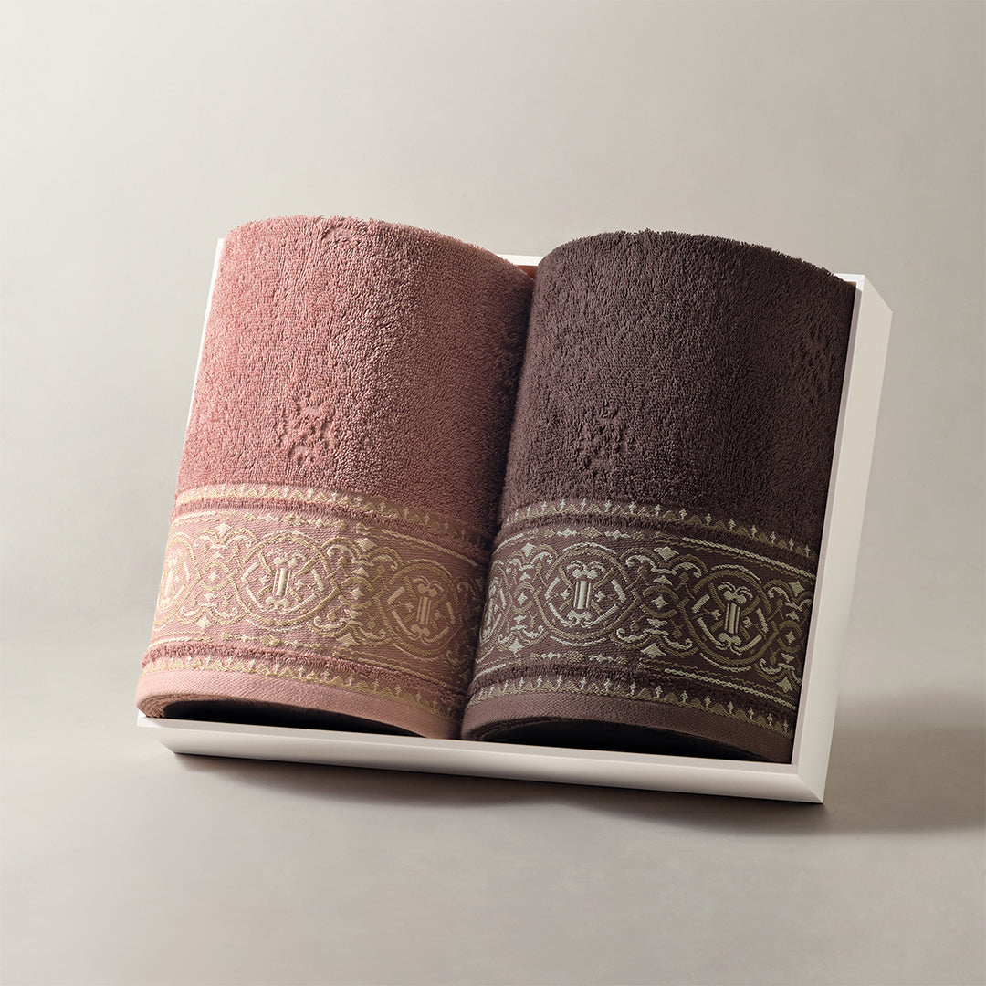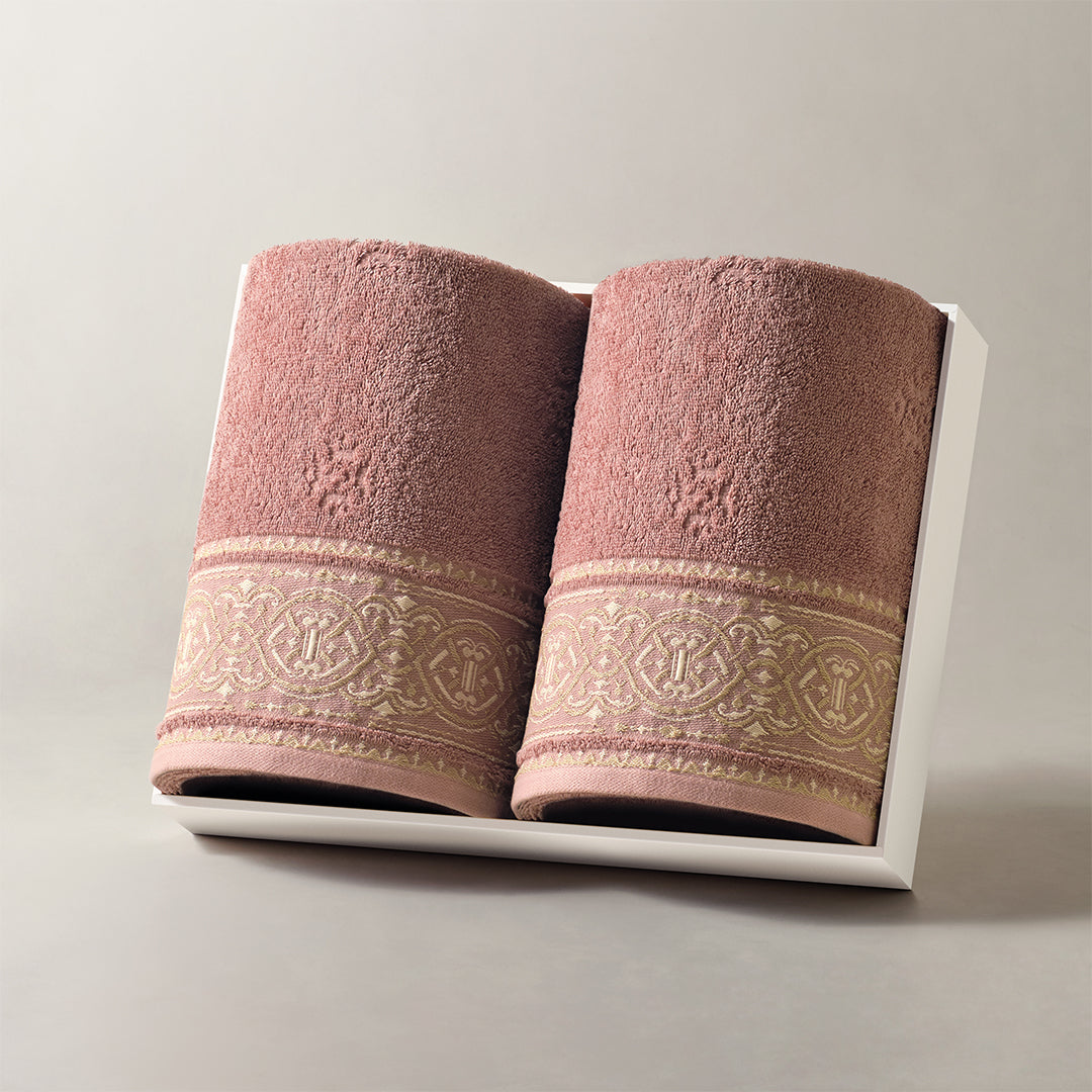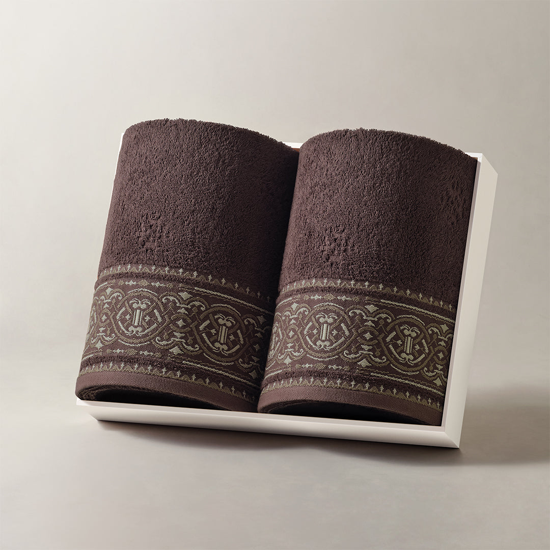 Designed with detailed pillar accents and intricate ornaments, the Astara Couple Towel is a meaningful and practical gift for special moments. Its luxurious motif pairs beautifully with warm neutral tones. Perfect for gifting to couples, friends, family members, or parents—especially with personalized name or initial embroidery.