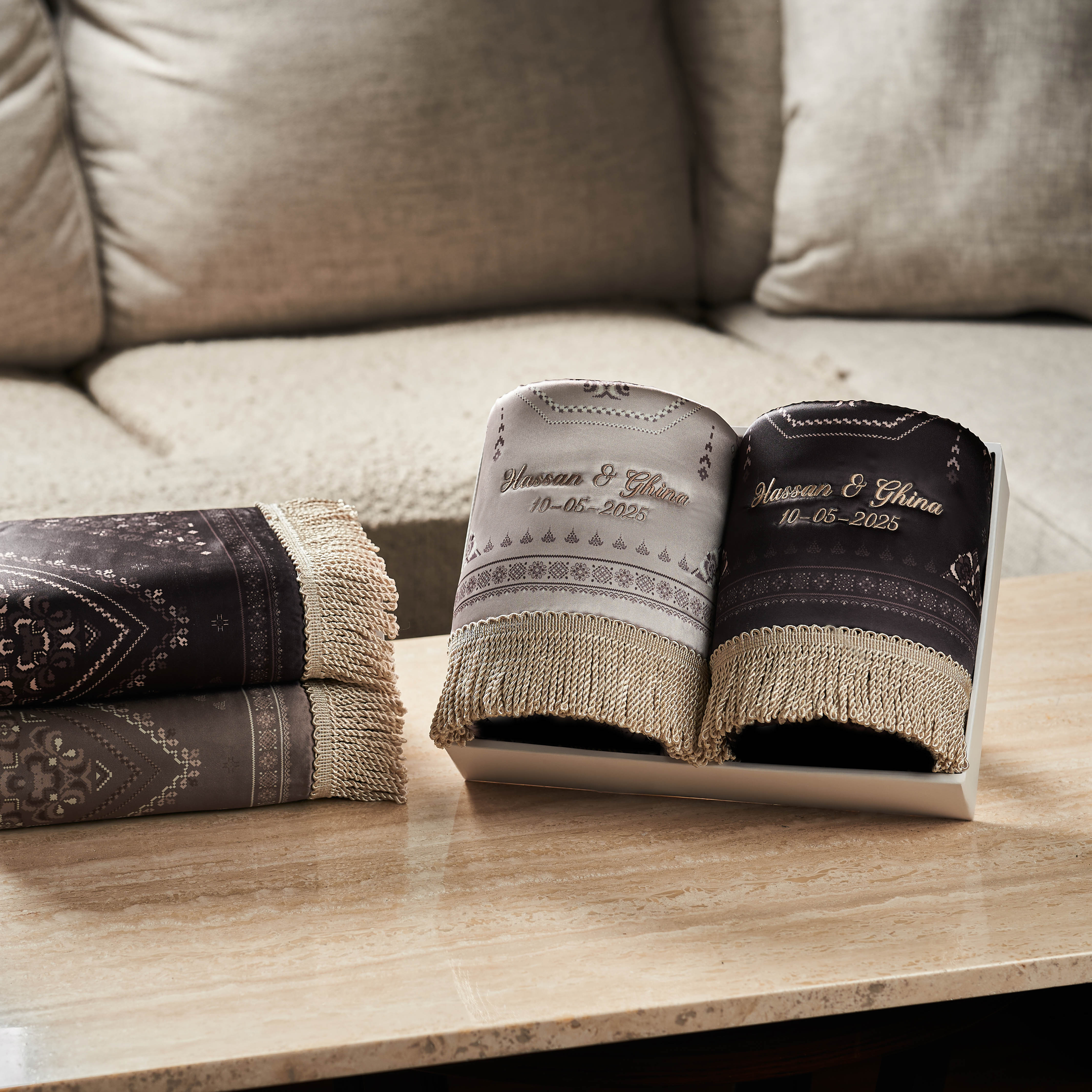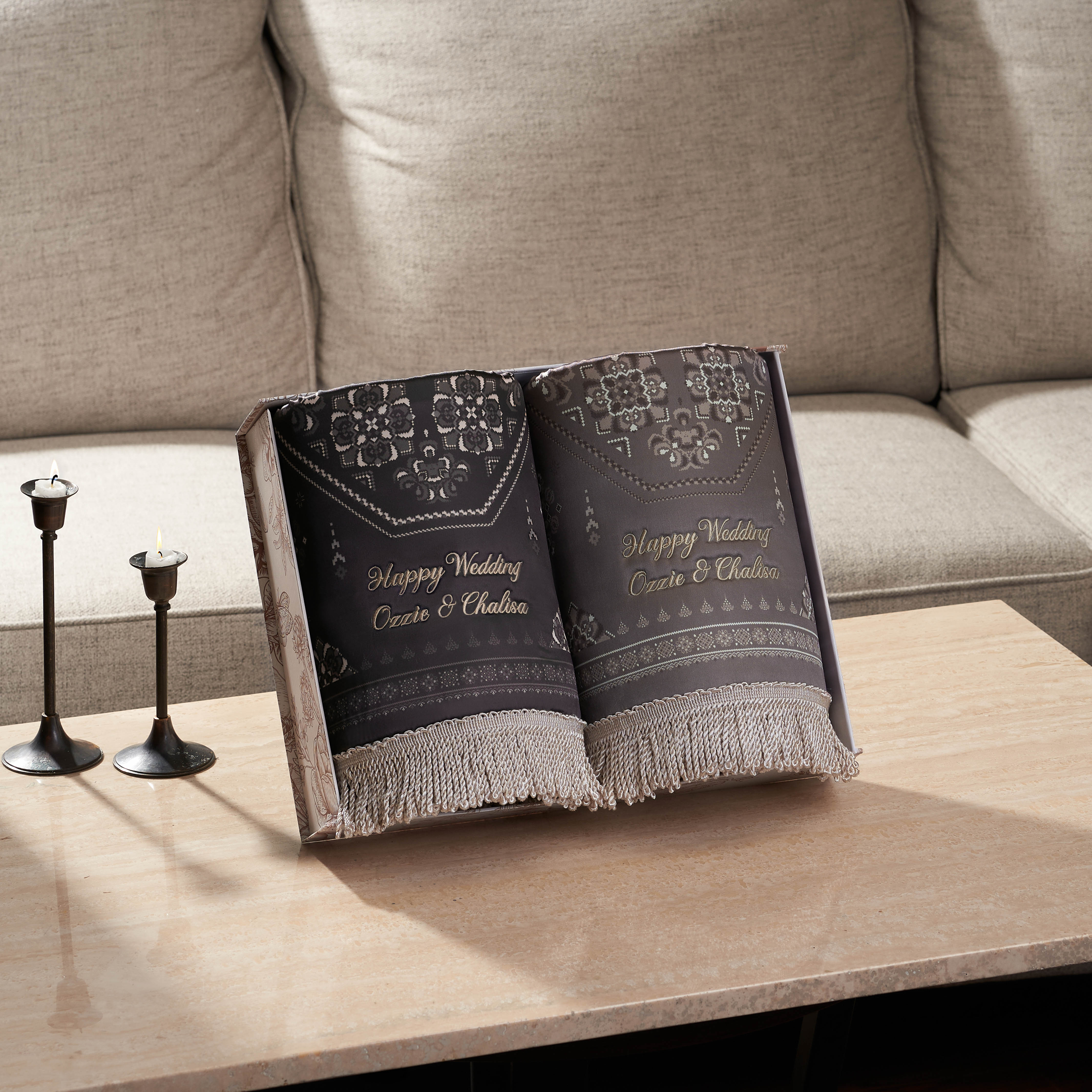 Perfect for special occasions, the Ankara Couple Prayer Mat Set is an essential companion for daily worship. Made from soft satin with cushioned padding, this lightweight set ensures comfort during prayers—at home or while traveling. Personalize it with names or initials to make your gift even more meaningful and memorable.