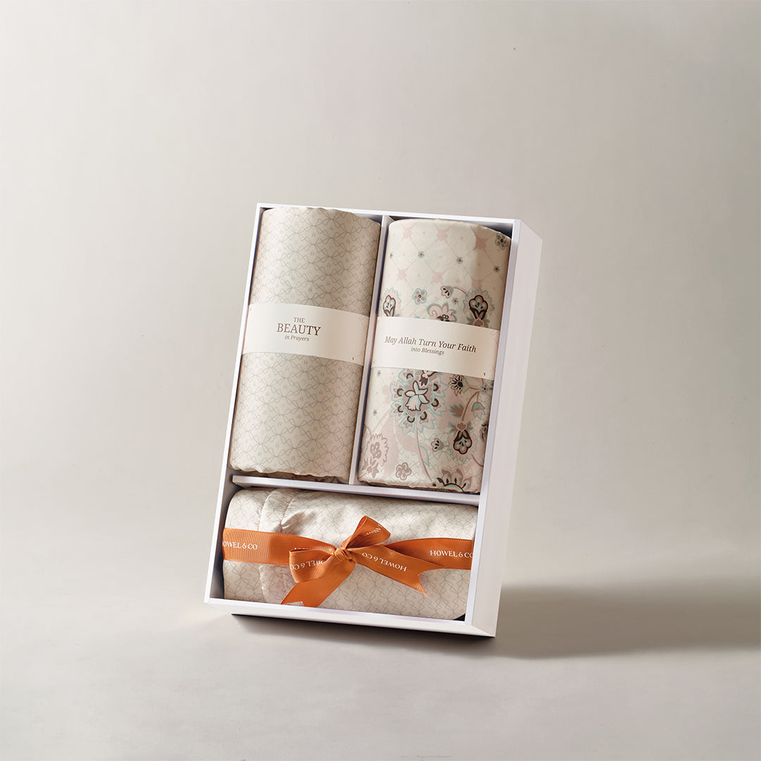 A sweet and meaningful prayer gift, the Mukena Enoura from Howel & Co is beautifully designed with intertwined floral and vine motifs—perfect for someone special. Crafted from soft and breathable Fine Silky Weave fabric, it features exclusive laser-cut details that add a refined touch. Comes with a matching drawstring pouch, making it a travel-friendly companion for daily prayers or on-the-go worship moments.