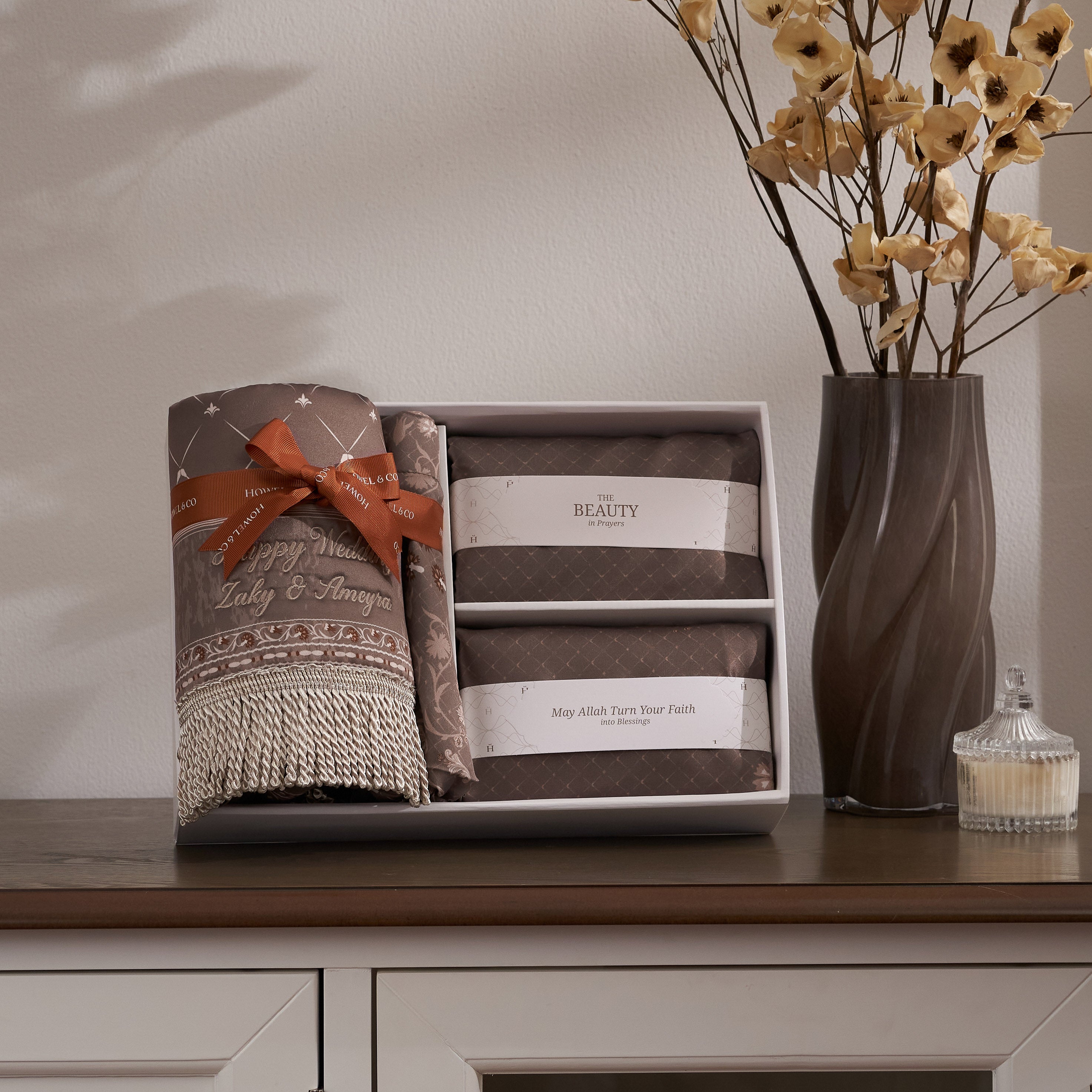 A meaningful 2-in-1 prayer gift set for her—featuring a fine silky mukena and a premium prayer mat designed for everyday worship. Available in elegant color options, this set makes a thoughtful and practical present. Personalize the prayer mat with a name or heartfelt message to make your gift even more unique and special.