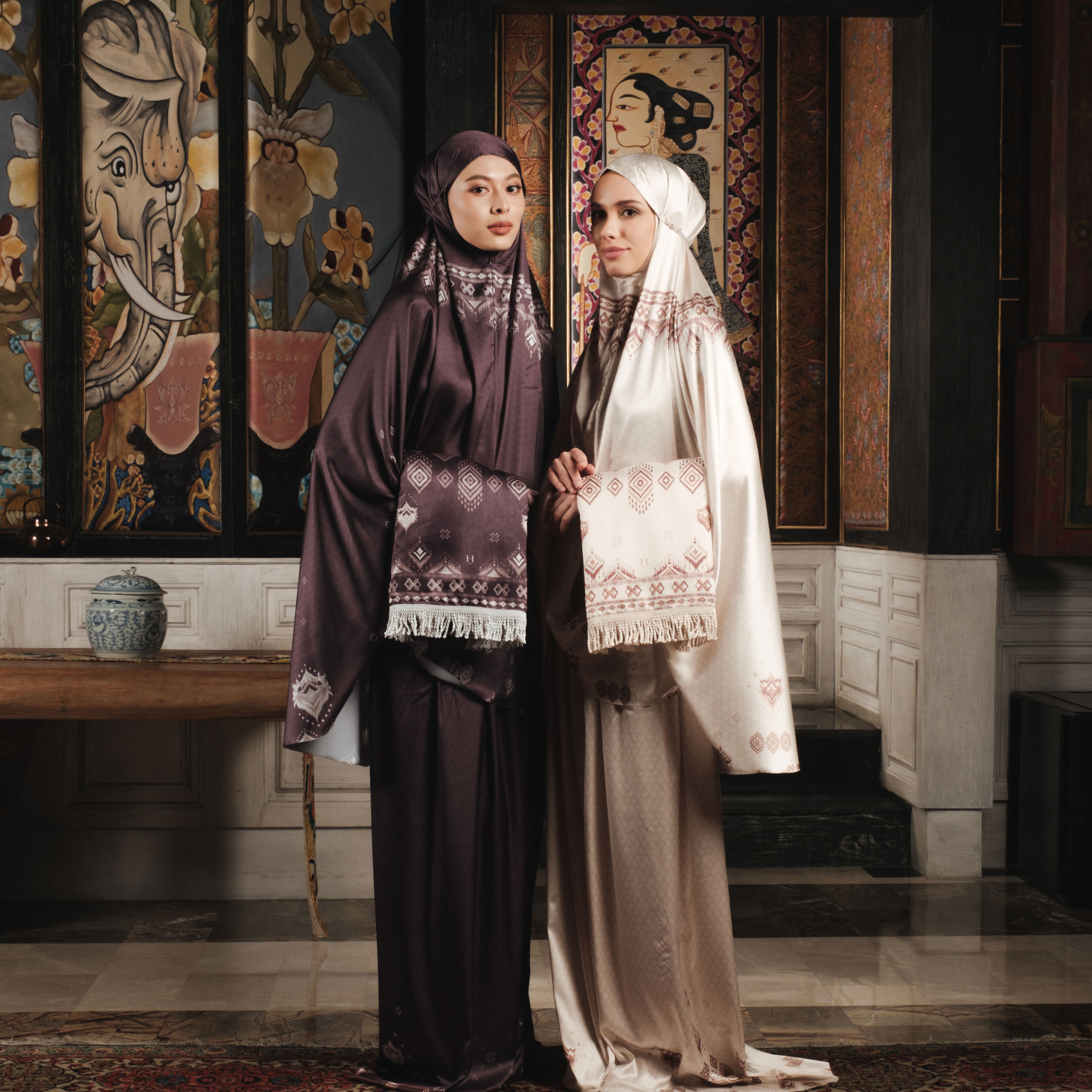 - Elegance in Every Detail: A soft mukena paired with a finely textured prayer mat—featuring hues and detailing that radiate feminine grace.