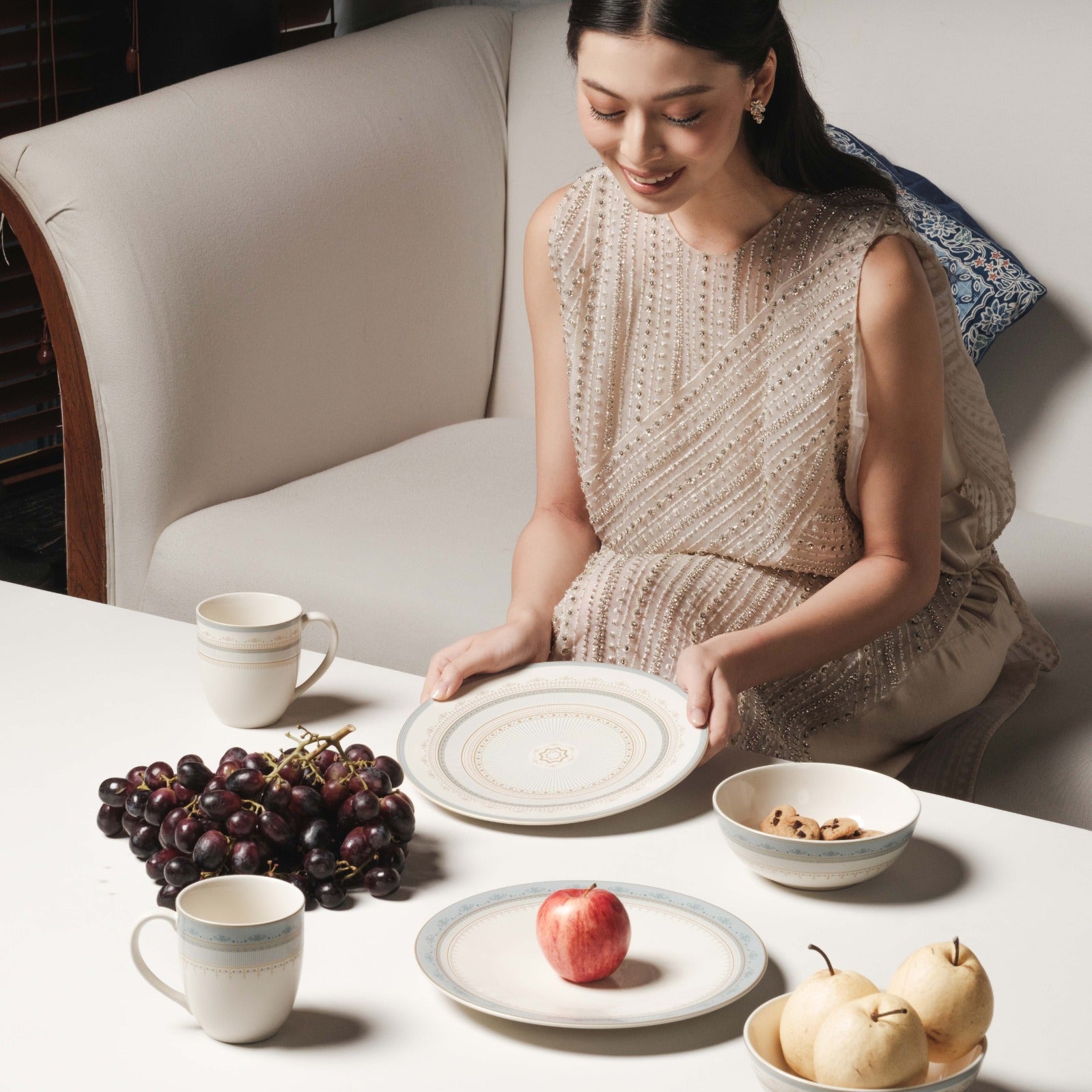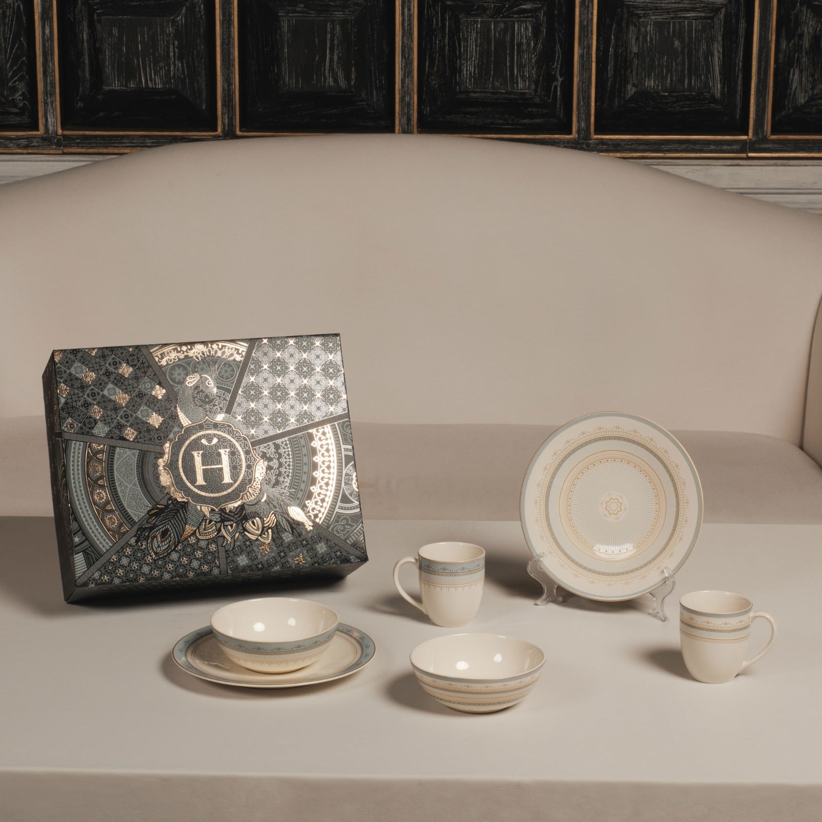 Inspired by the elegance of geometric patterns, the Cascadia Tableware Set brings a refined touch to your dining moments. This beautifully curated set includes two dinner plates, bowls, and mugs—each featuring one of two distinct design styles. A perfect gift to elevate any special occasion, from early morning meals to evening gatherings and festive celebrations.