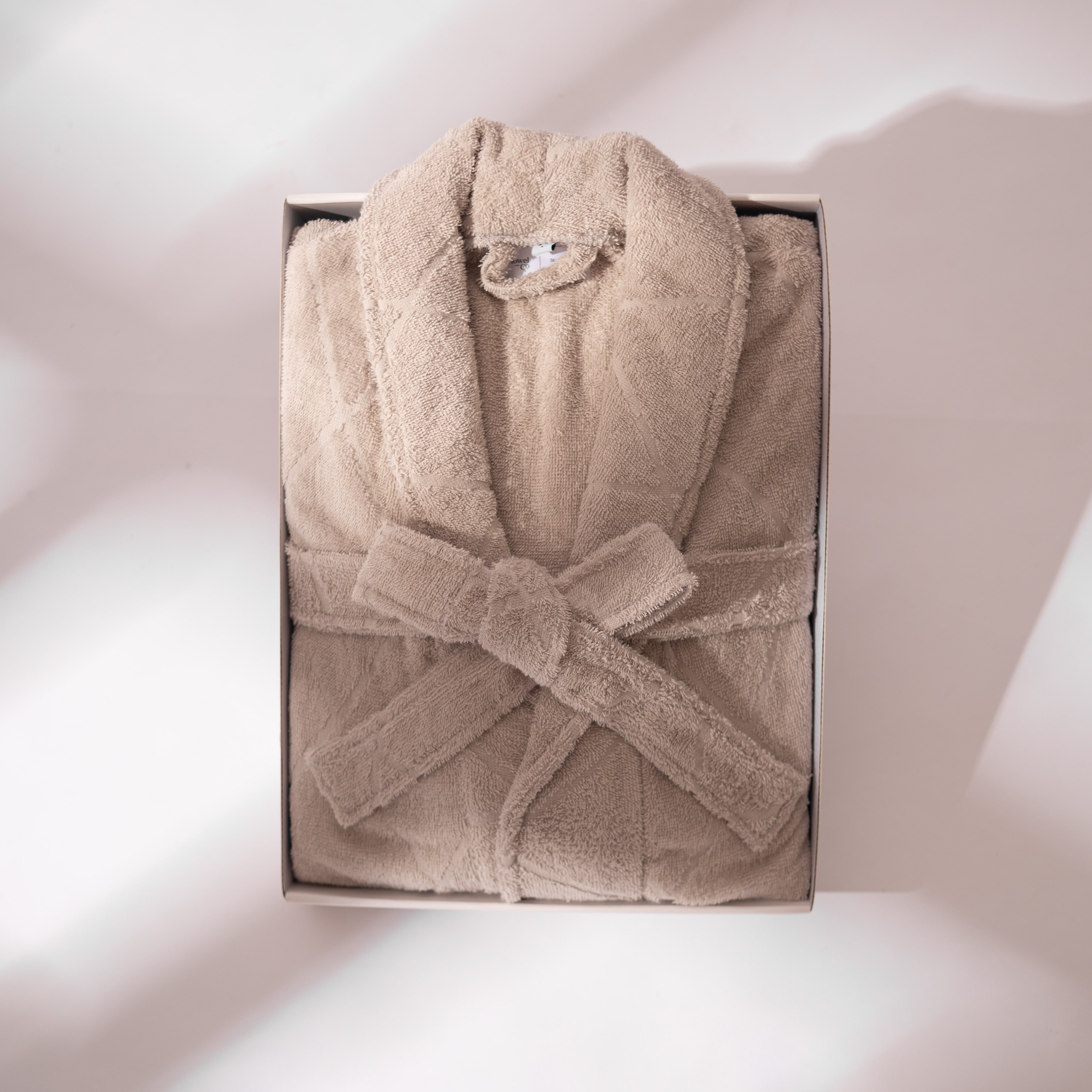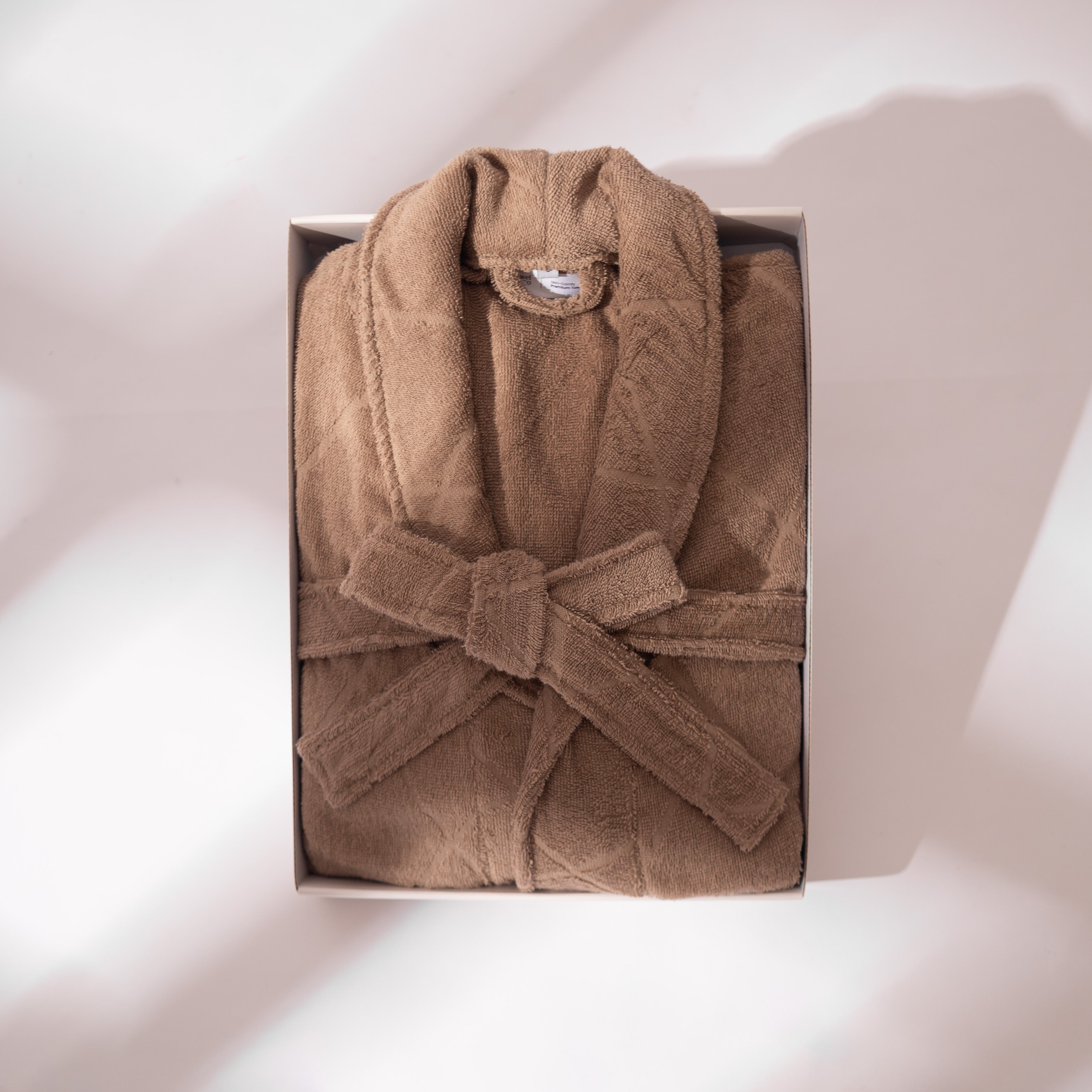 The Bryce Bathrobe is a luxurious gift choice, made with thick and soft material, complete with stylish belt and pocket details. Featuring a classic motif and available in three charming color combinations, it adds a memorable touch to any special moment.