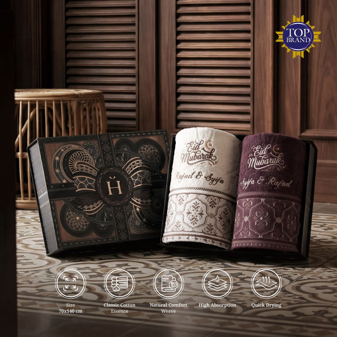 Accented with elegant embroidery and classic details, the Elion Couple Towel makes a considered Raya gift for couples or families—functional, thoughtful, and festive.
