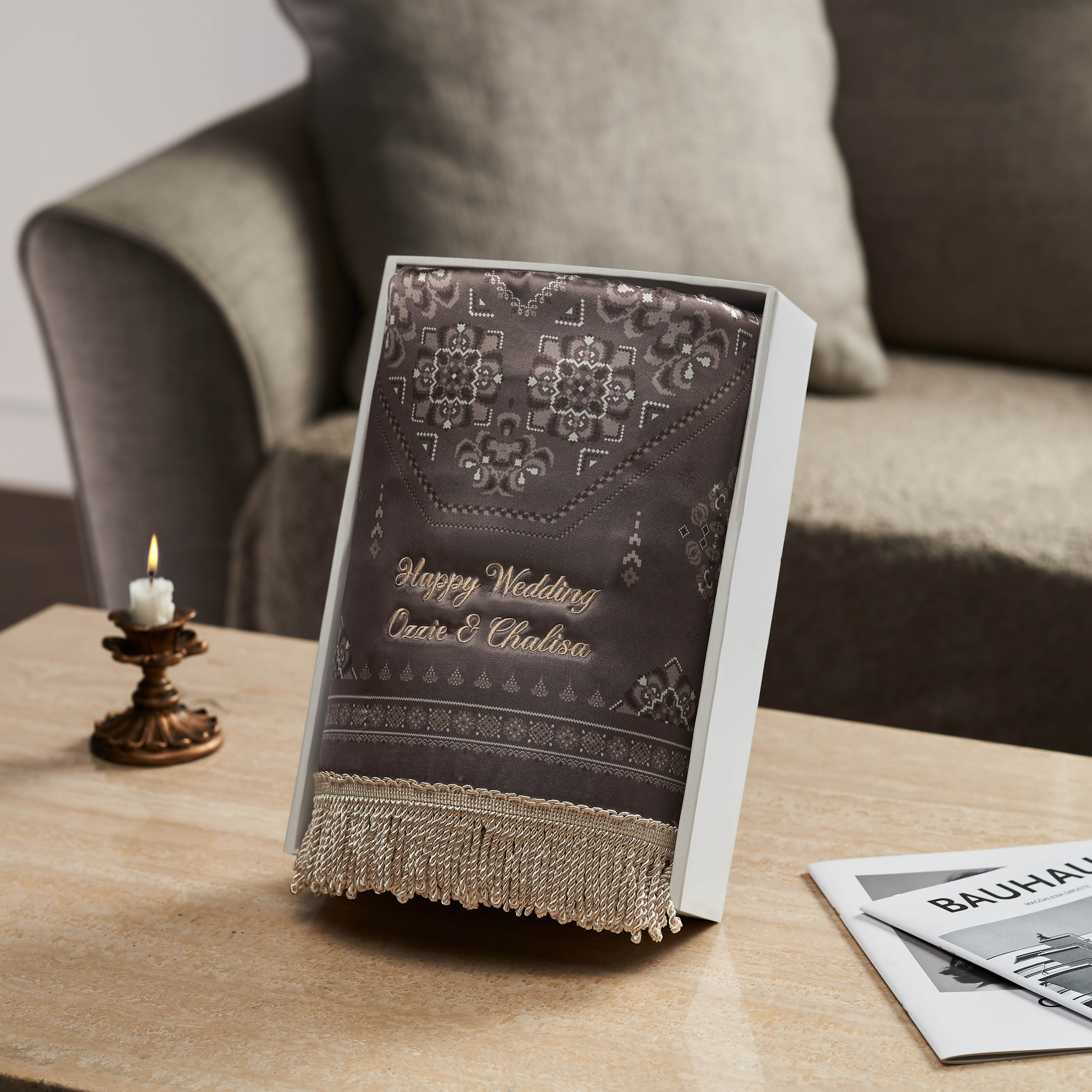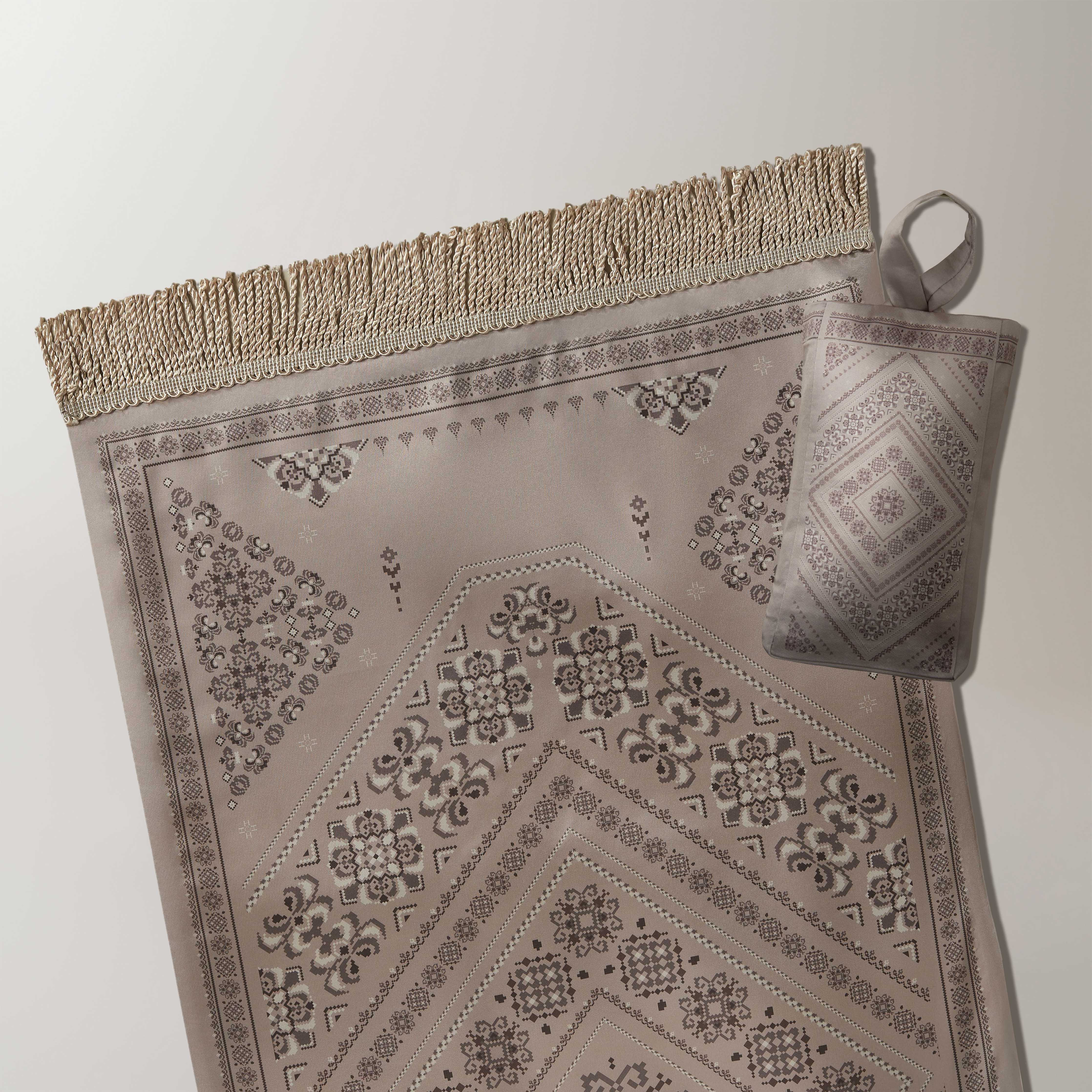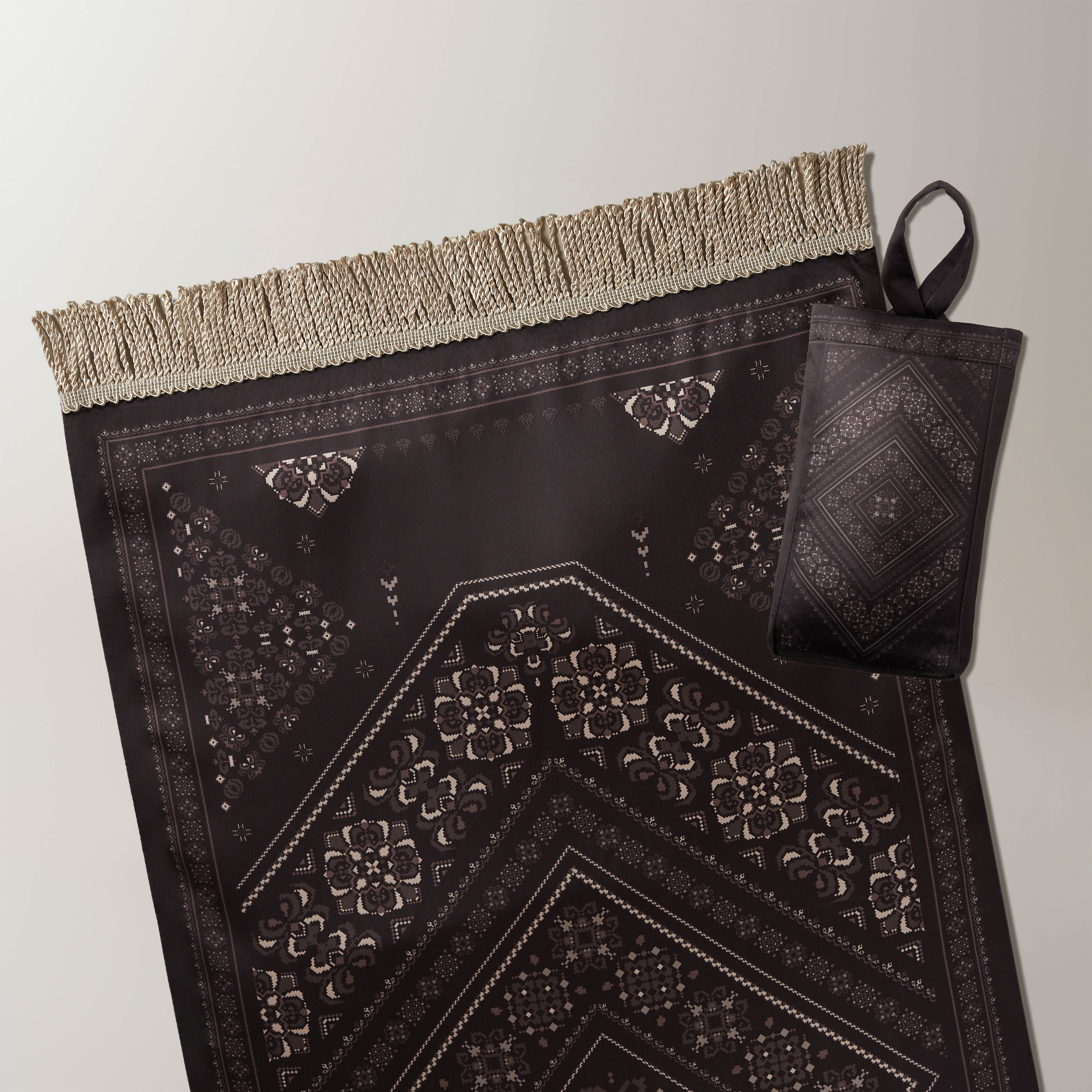 The Ankara Single Prayer Mat features a distinctive diamond pattern inspired by classic Islamic ornaments, with intricate symmetrical detailing. Available in three warm brown-toned color options, it can be personalized with a custom embroidery at the bottom for a thoughtful touch. A meaningful and practical gift choice for celebrating life’s special moments with your loved ones.