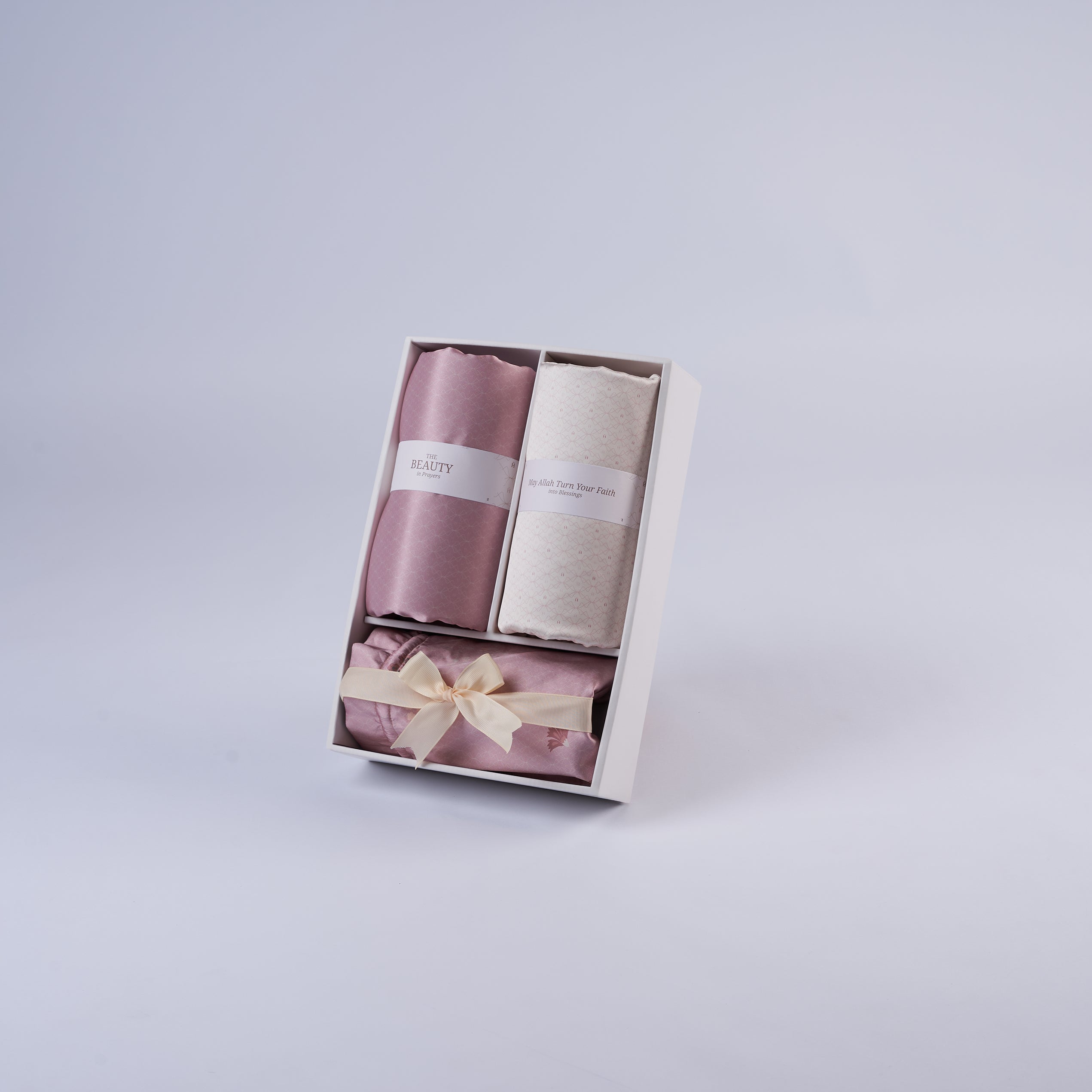 Inspired by the eternal garden theme in elegant Damask style, the Halwa Mukena is a beautiful and meaningful gift to celebrate special moments. Crafted from premium Fine Silky Weave, it offers a luxuriously soft and lustrous finish—making it a perfect choice to share with your loved ones.