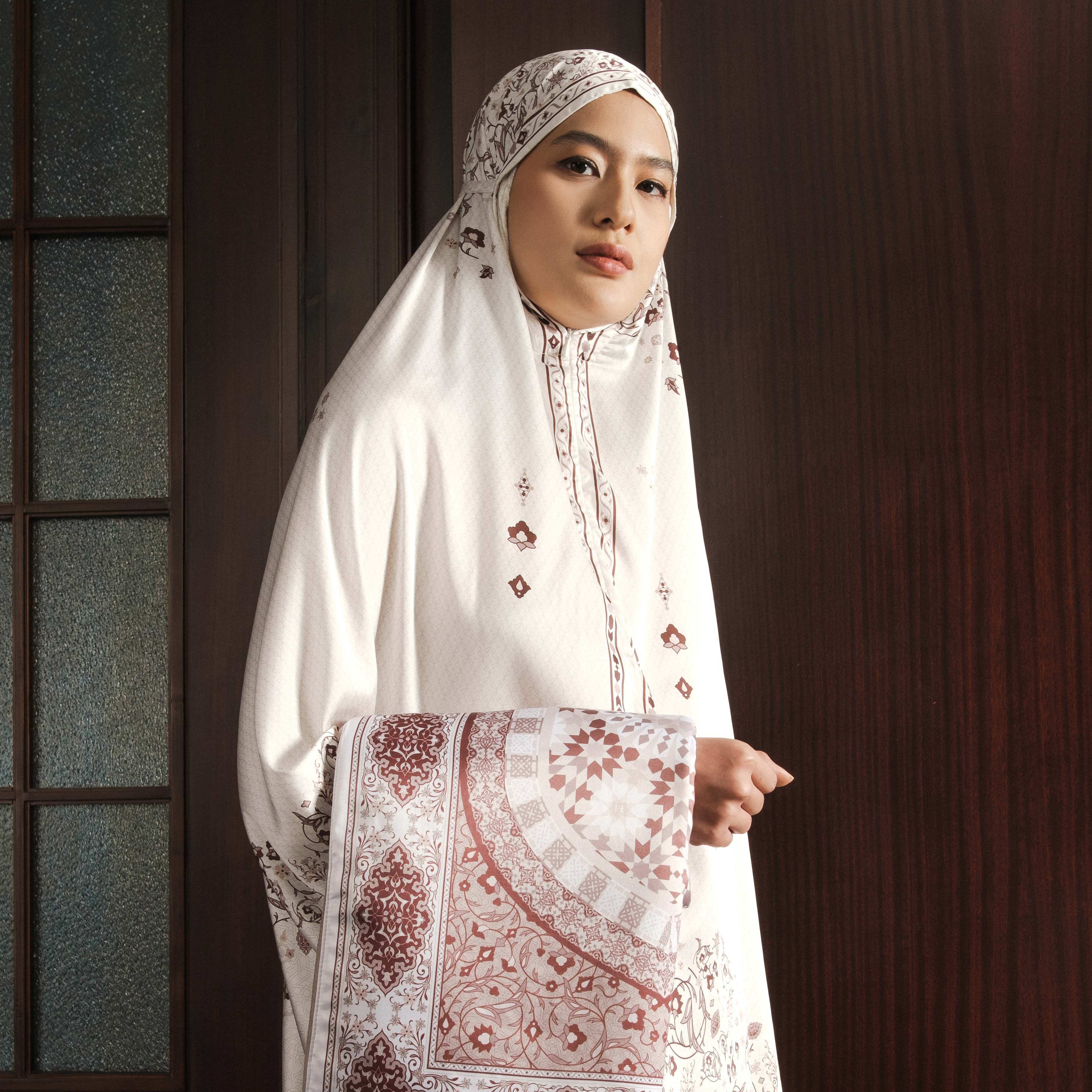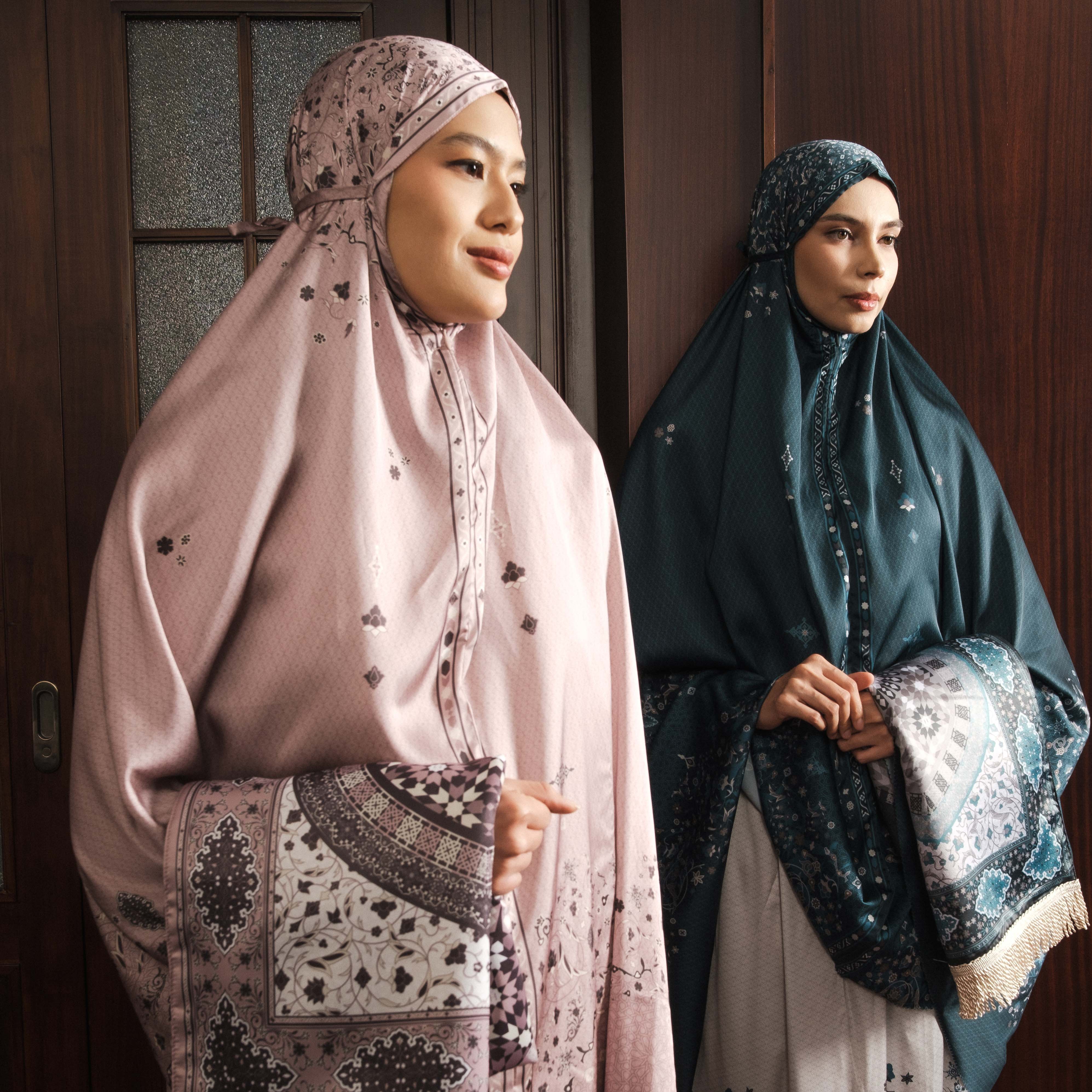 - Elegance in Every Detail: A soft mukena paired with a finely textured prayer mat—featuring hues and detailing that radiate feminine grace.