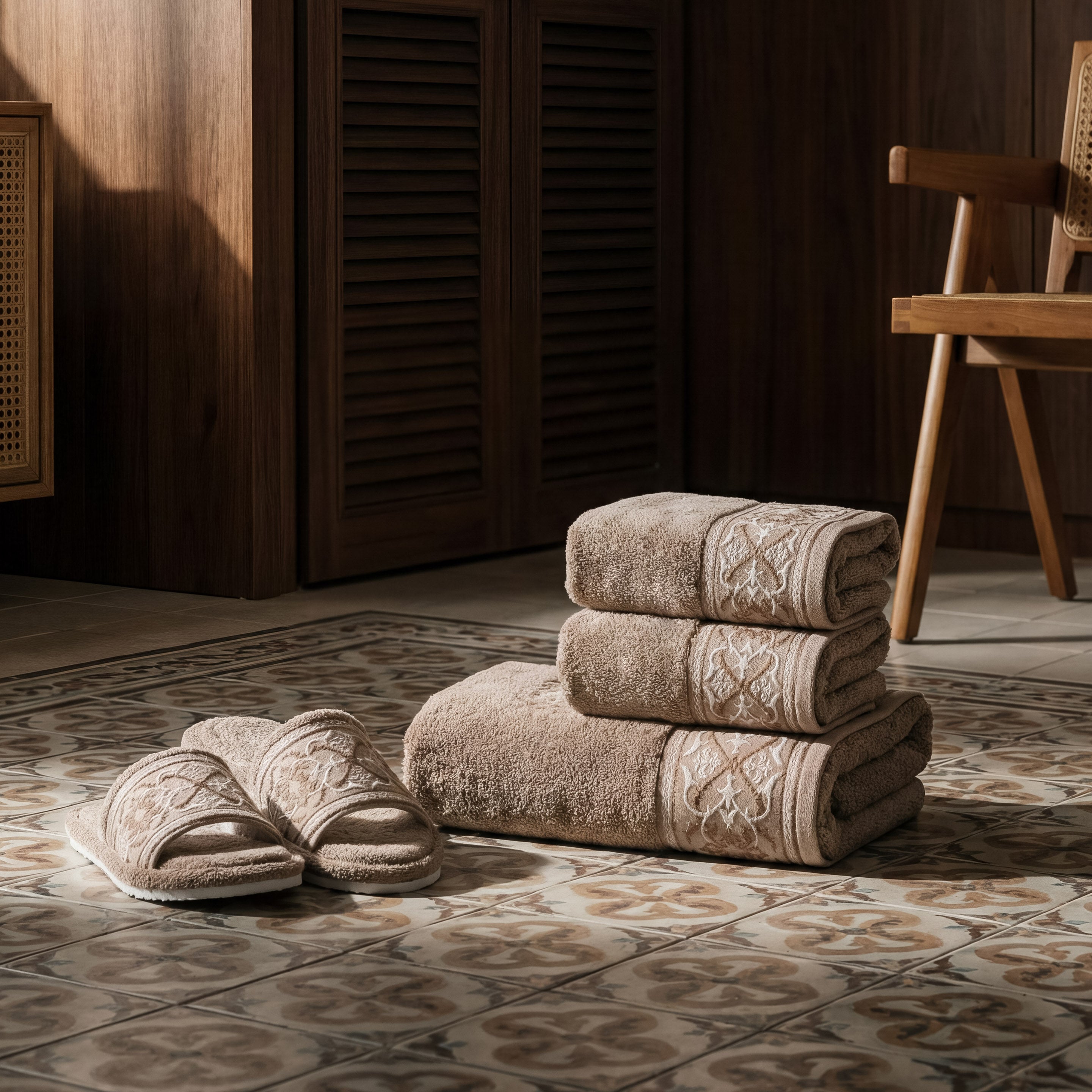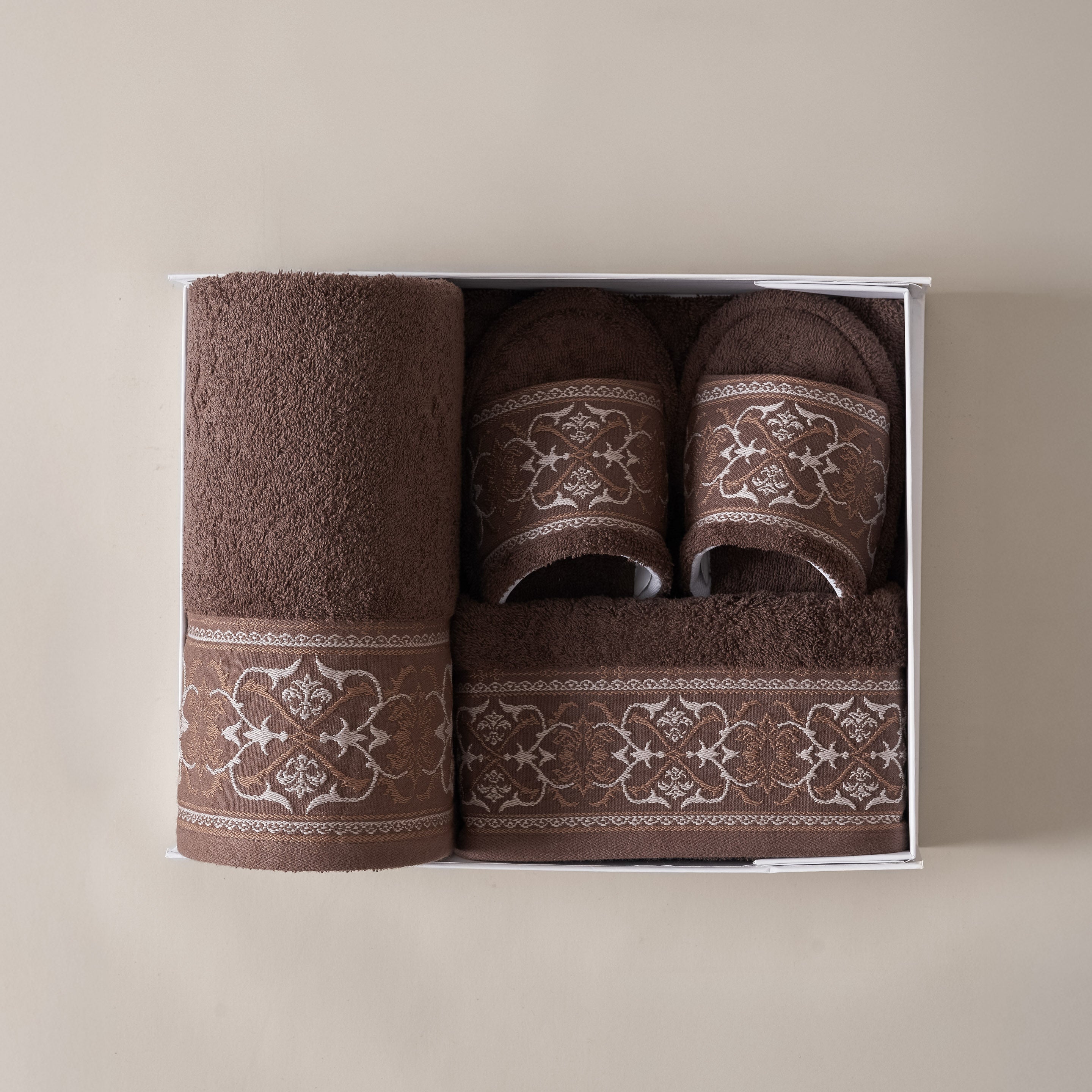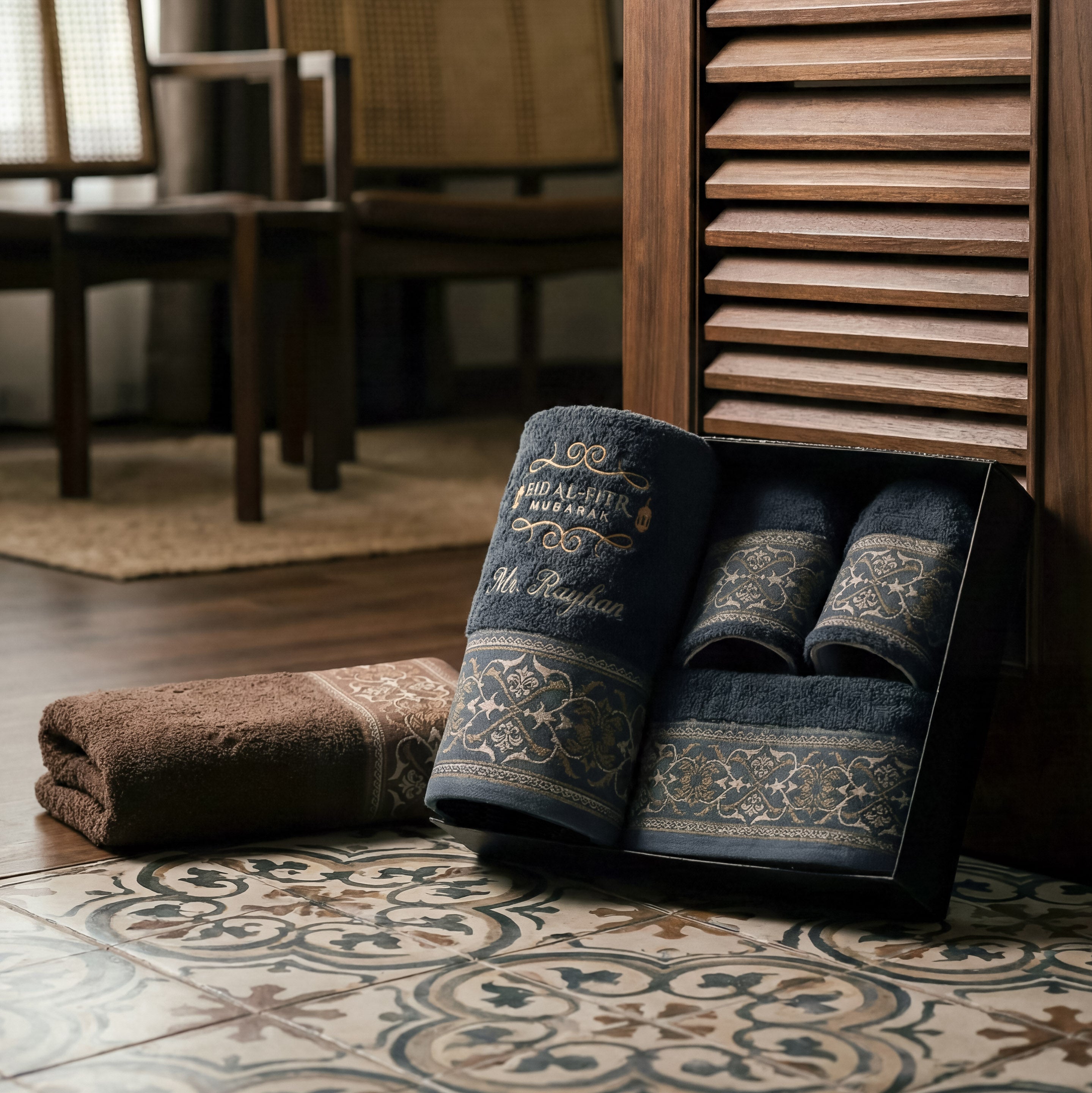 Elvara Premium Set brings together everyday essentials in a well-balanced set: 1 bath towel, 1 sport towel, 1 hand towel, and 1 pair of premium slippers. Carefully considered in both function and design, each piece offers comfort with a refined finish—making it a thoughtful Ramadan gift for family, friends, or colleagues.