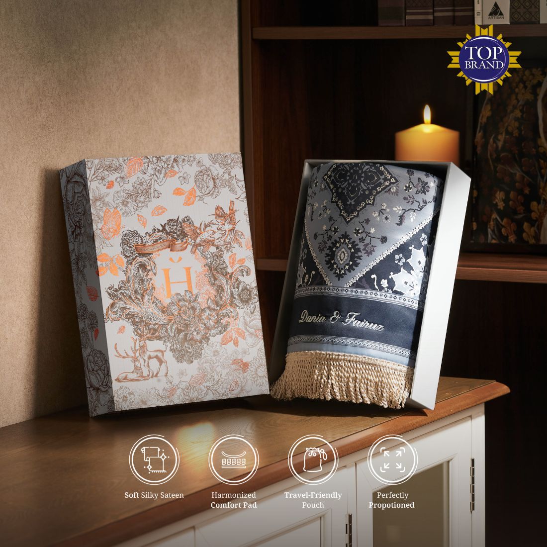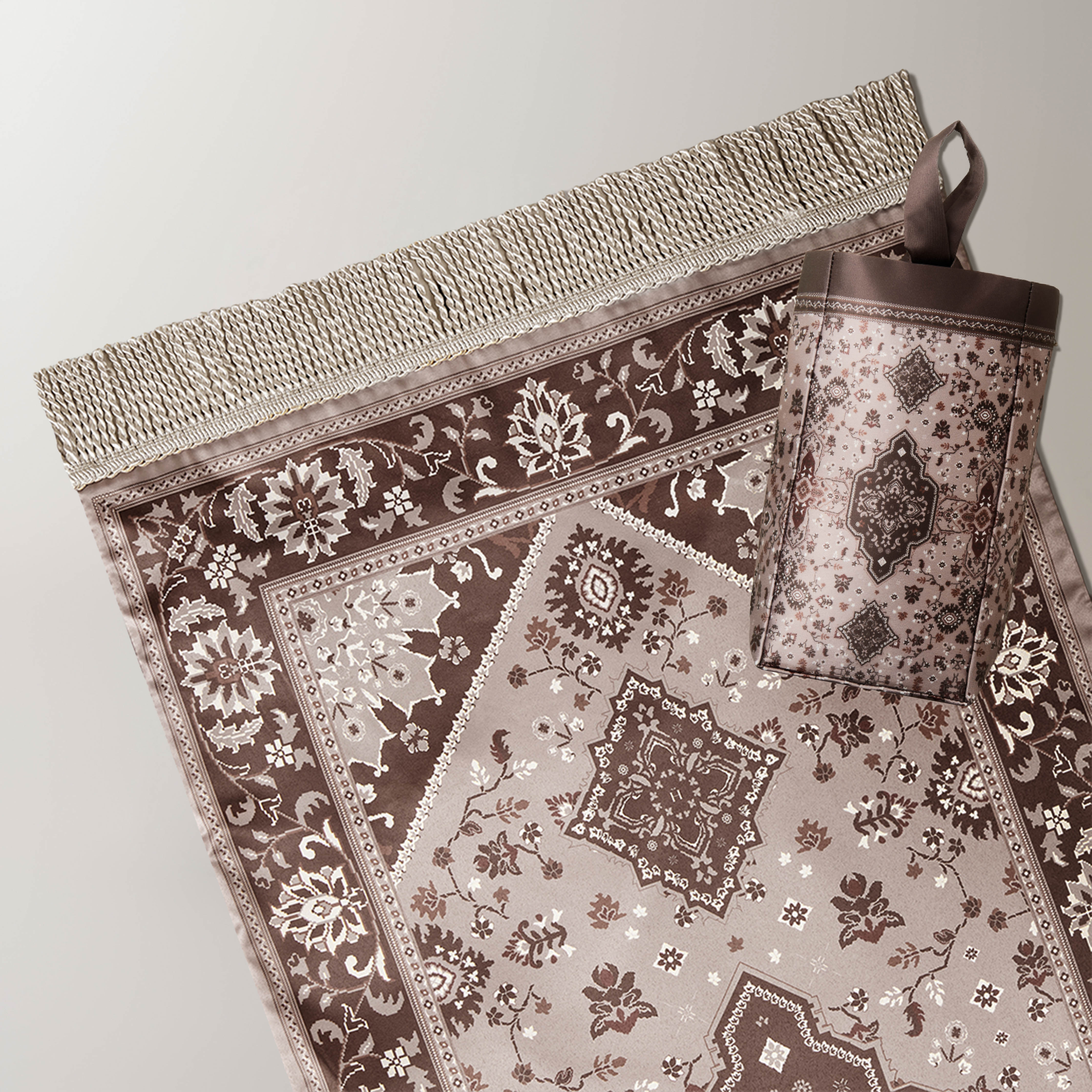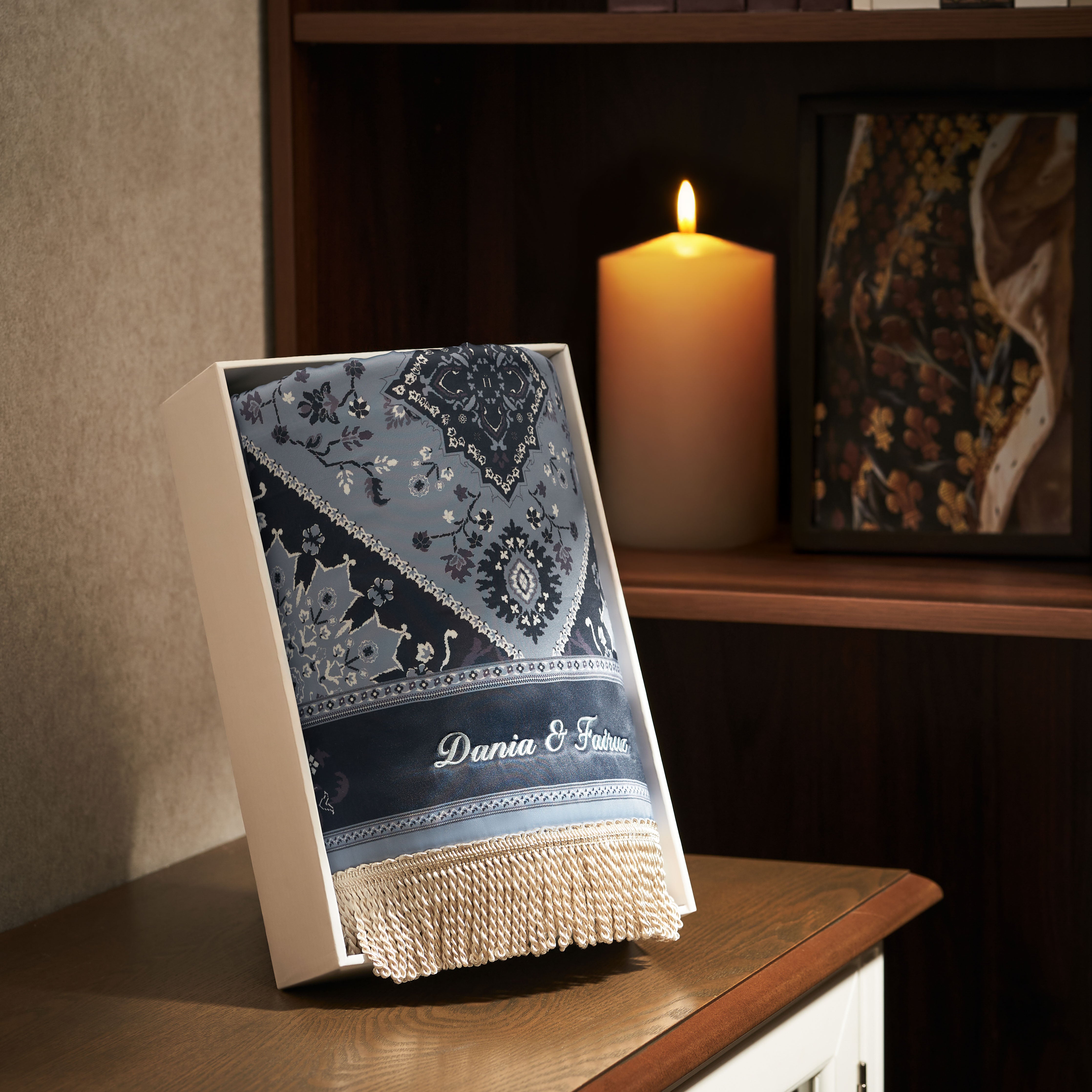The Shireen Single Prayer Mat features elegant floral ornaments and a timeless symmetrical pattern. Available in three favorite color options with classic detailing, it offers comfort and softness for daily prayers. A meaningful gift to share with loved ones, friends, or your partner on any special occasion.